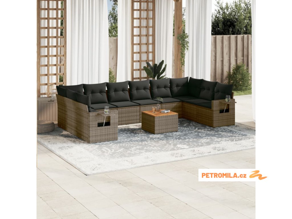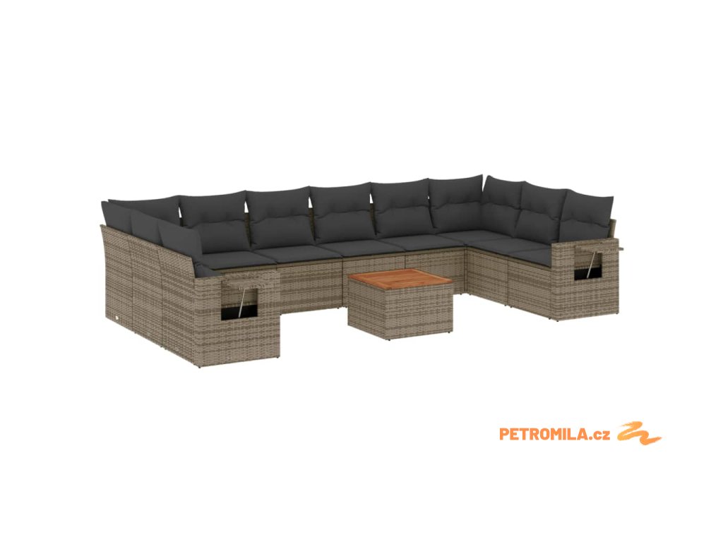 11dílná zahradní sedací souprava s poduškami šedá polyratan