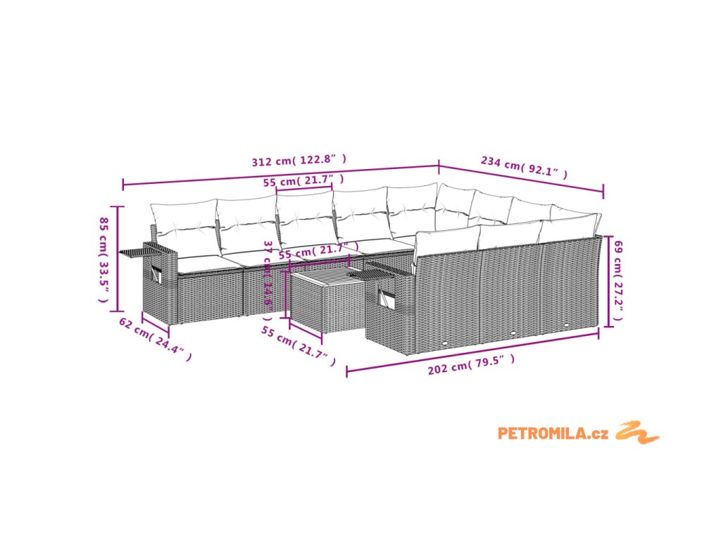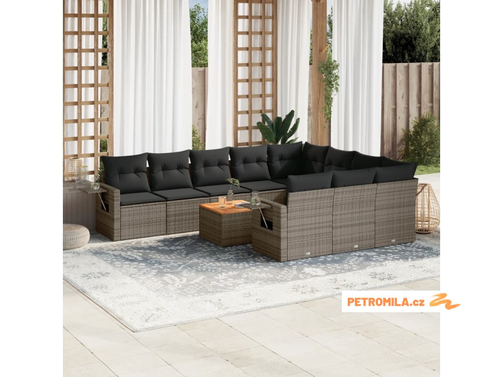 11dílná zahradní sedací souprava s poduškami šedá polyratan