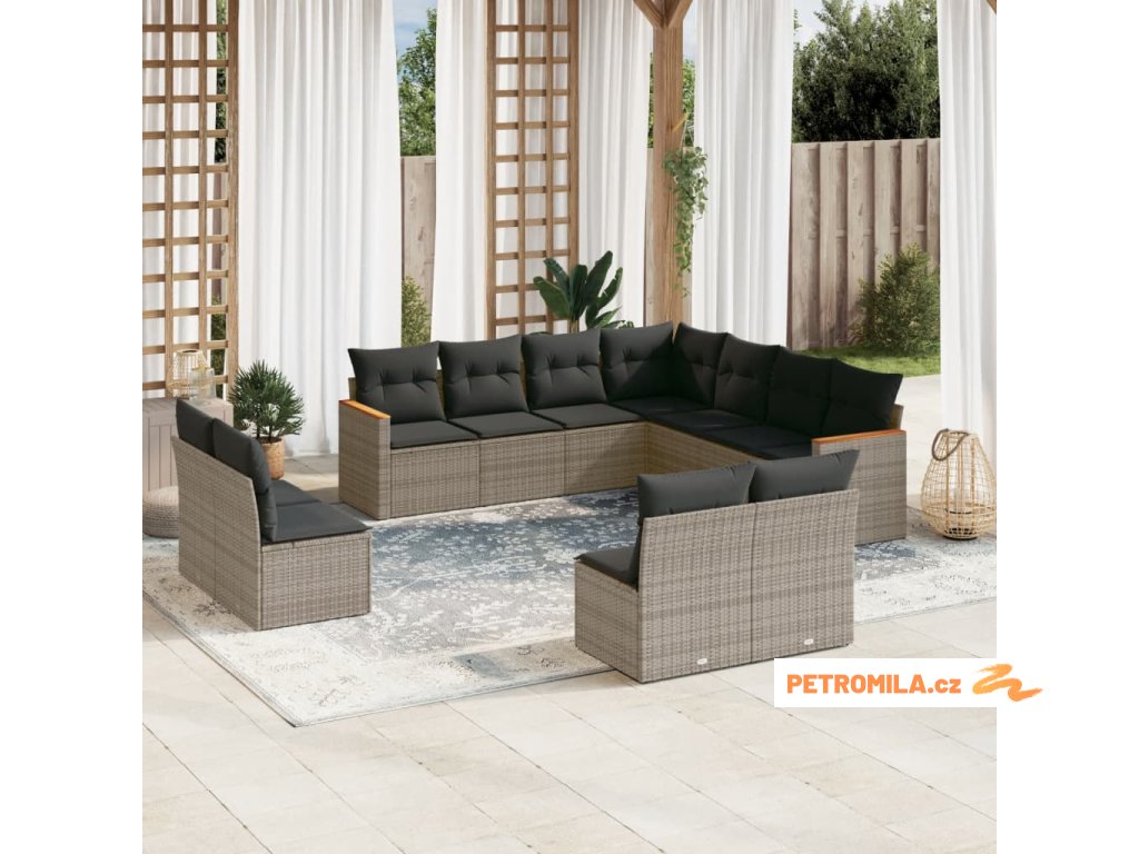 11dílná zahradní sedací souprava s poduškami šedá polyratan