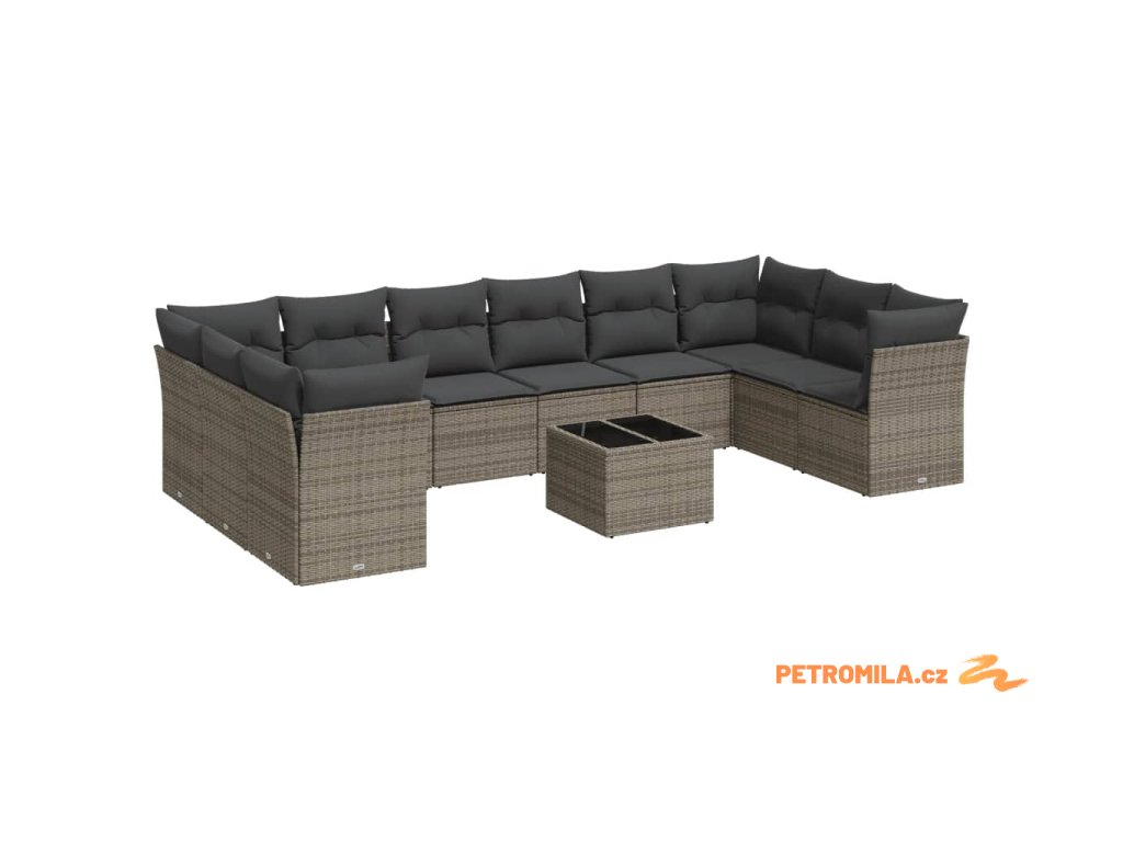 11dílná zahradní sedací souprava s poduškami šedá polyratan