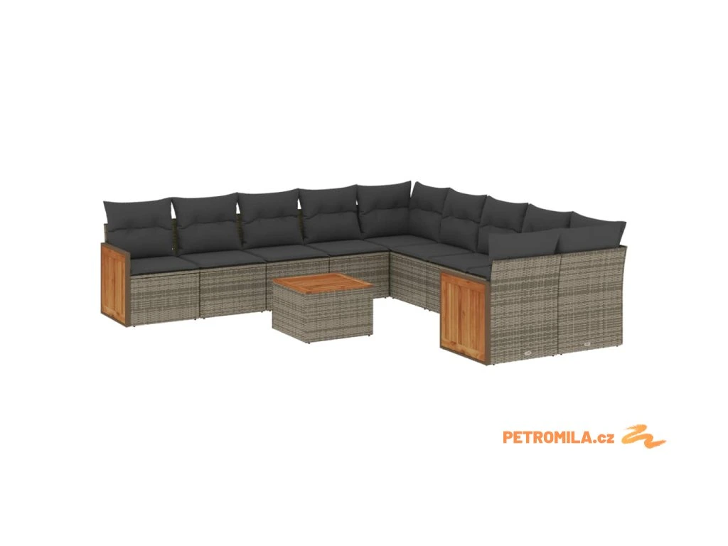 11dílná zahradní sedací souprava s poduškami šedá polyratan