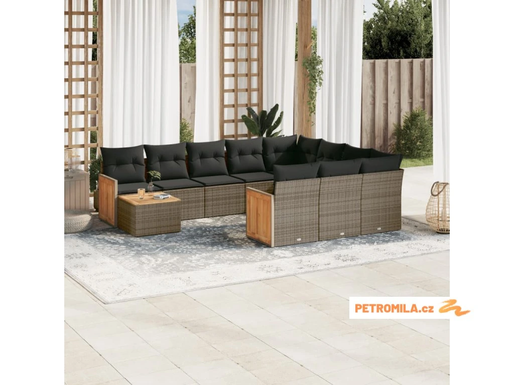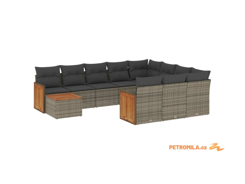 11dílná zahradní sedací souprava s poduškami šedá polyratan