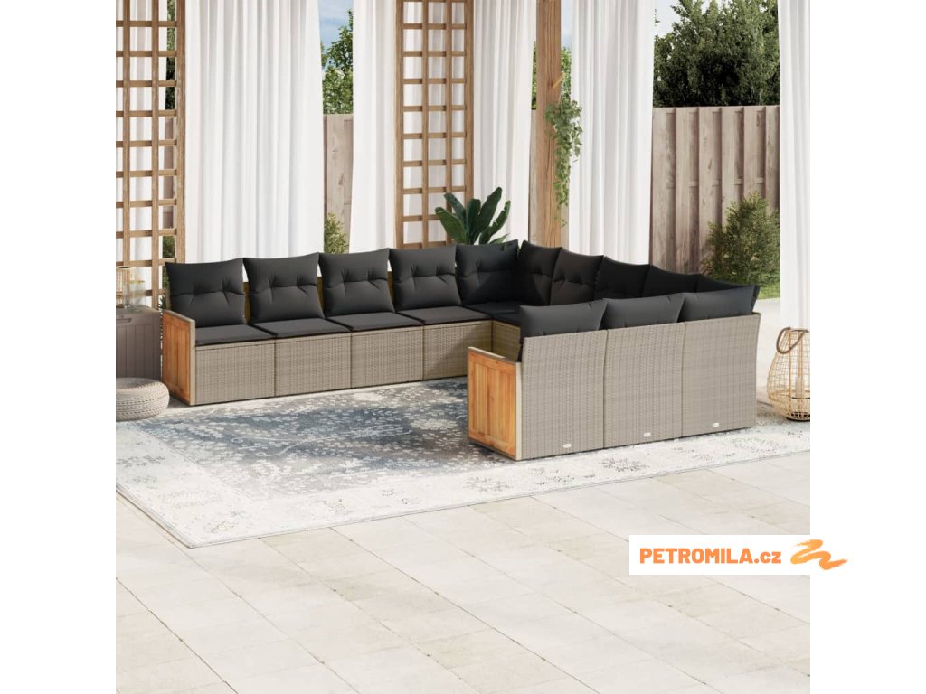 11dílná zahradní sedací souprava s poduškami šedá polyratan