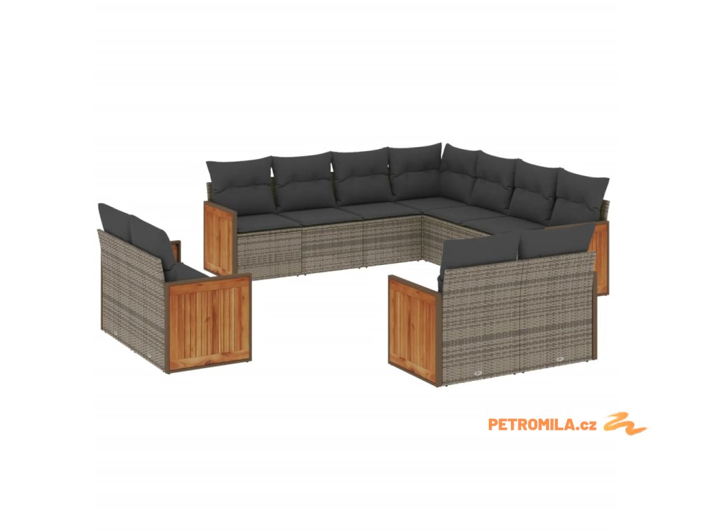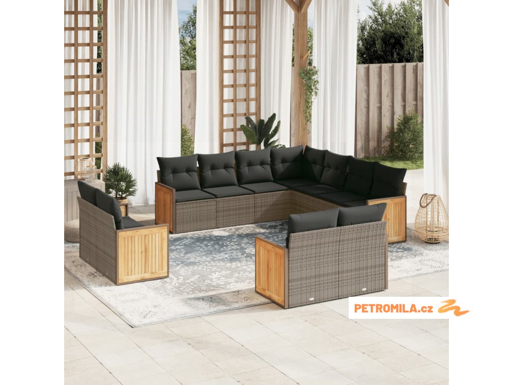 11dílná zahradní sedací souprava s poduškami šedá polyratan
