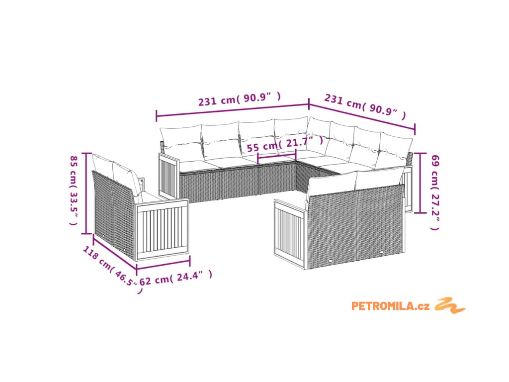 - Rozměry podušky na sedák: 55 x 55 x 3 cm (Š x H x T)