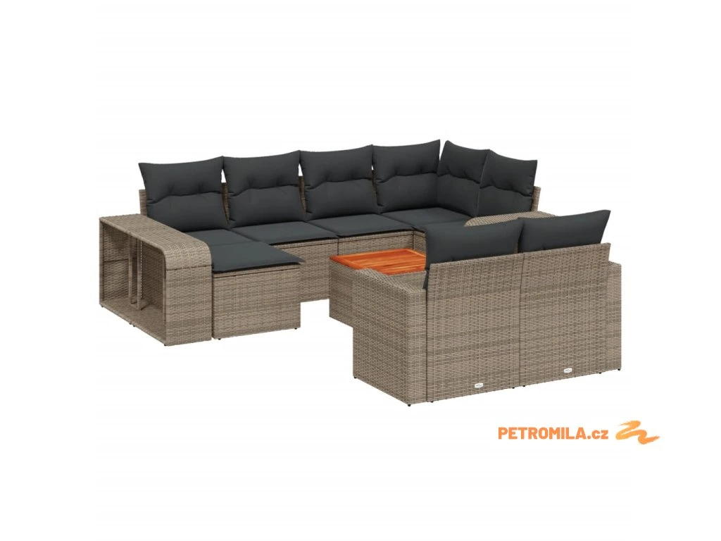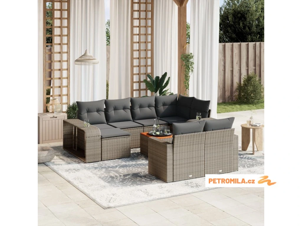 11dílná zahradní sedací souprava s poduškami šedá polyratan