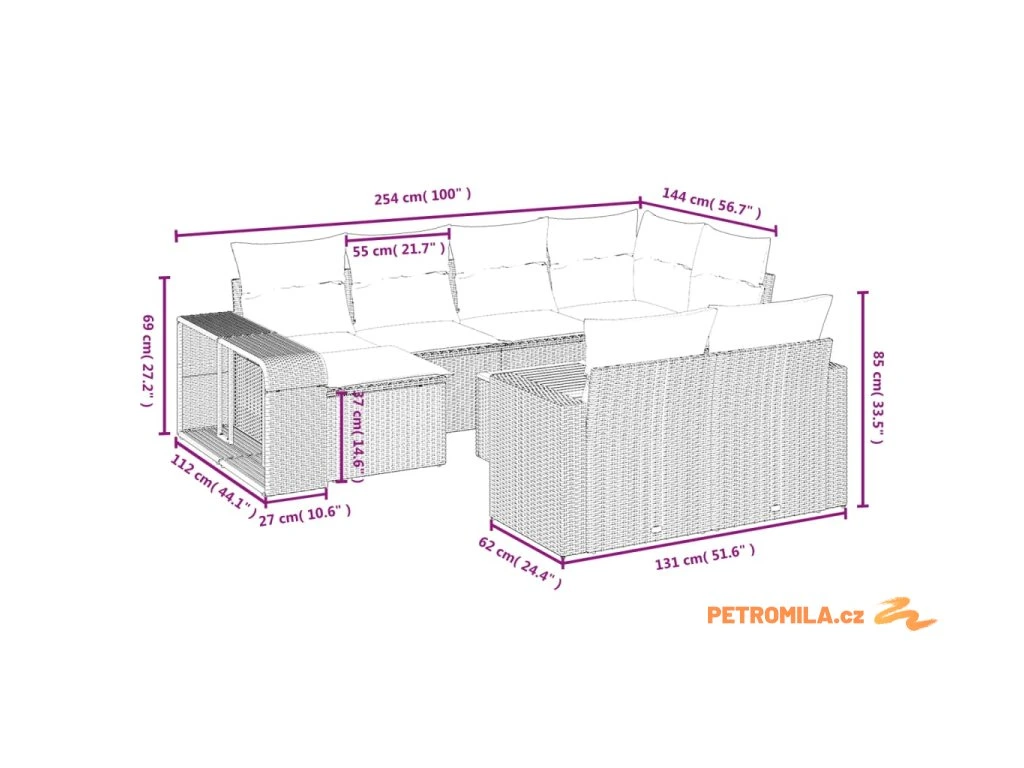 - Modulární design: Tato sada venkovního nábytku se vyznačuje modulární konstrukcí, je tedy zcela flexibilní a lze ji snadno přemisťovat, takže si můžete uspořádat venkovní nábytek dle vašich potřeb.