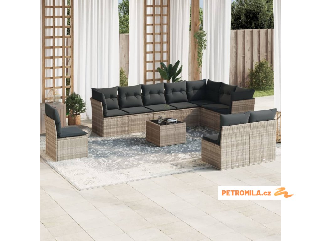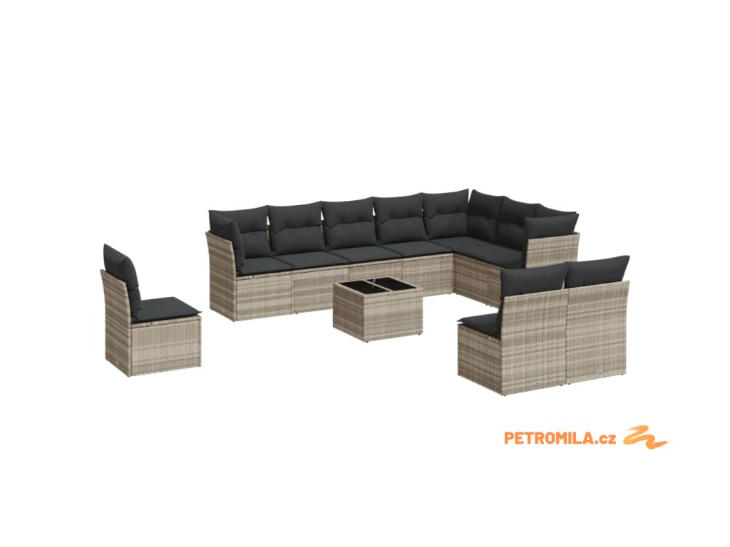 11dílná zahradní sedací souprava s poduškami šedá polyratan