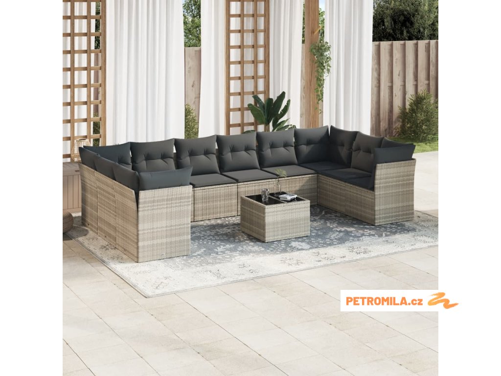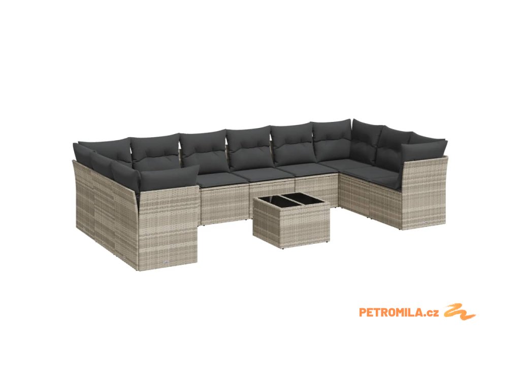 10dílná zahradní sedací souprava podušky světle šedá polyratan