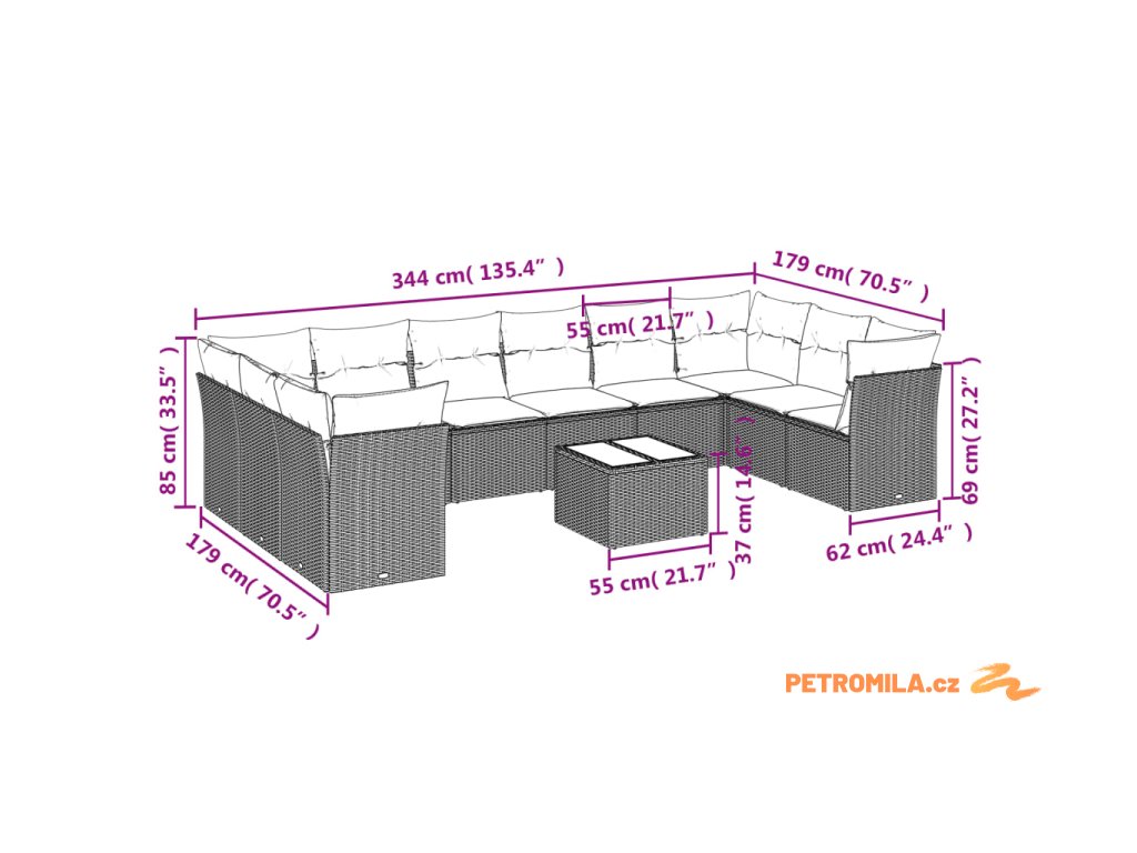 Tato zahradní sedací souprava je dokonalým doplňkem vaší zahrady, terasy nebo dvorku a poskytne vám pohodlné a příjemné místo, kde si můžete povídat s rodinou a přáteli nebo jen tak odpočívat a užívat si pobyt venku.