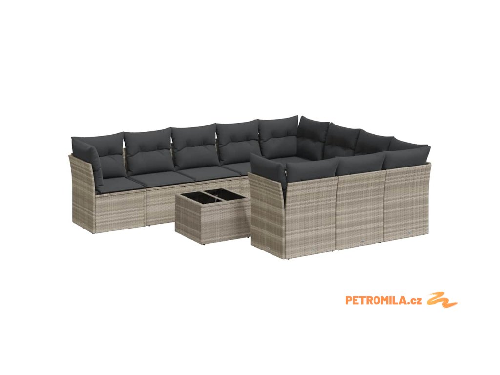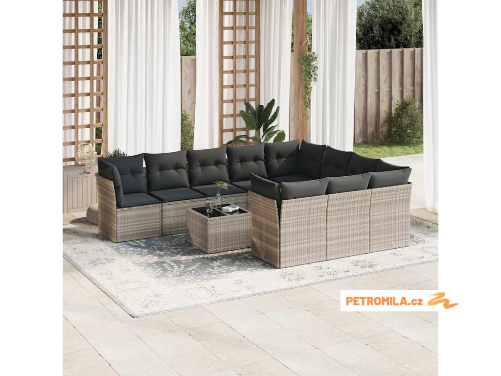 10dílná zahradní sedací souprava podušky světle šedá polyratan