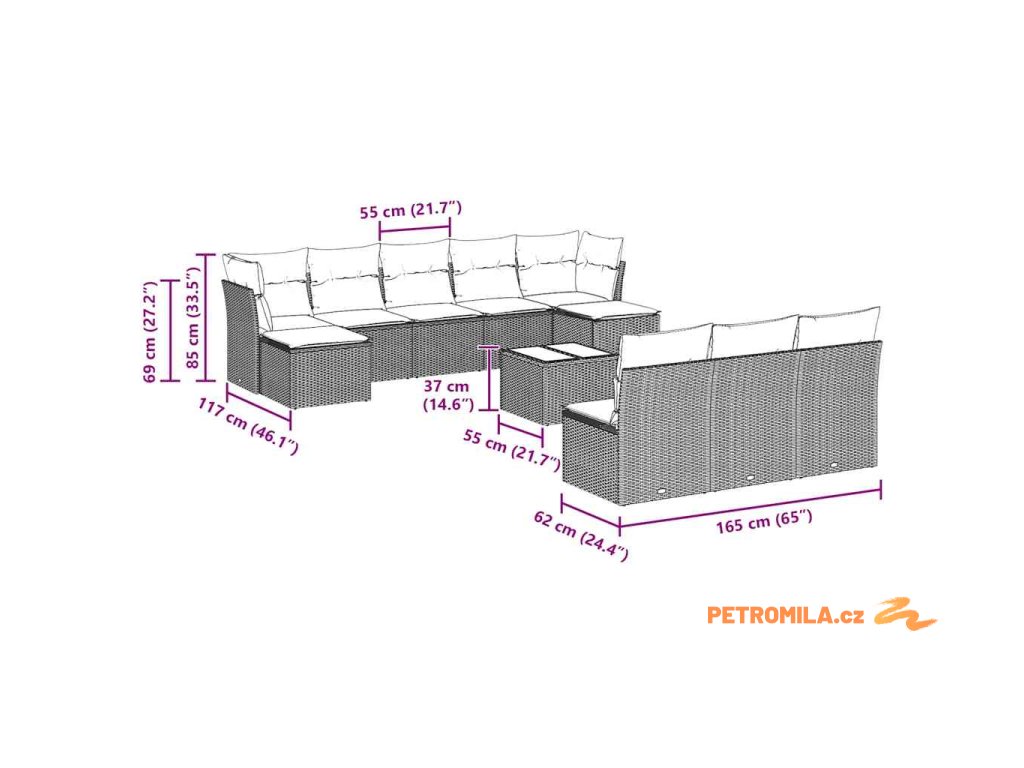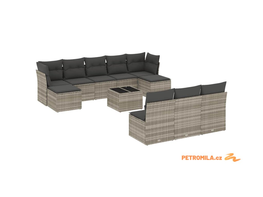 11dílná zahradní sedací souprava s poduškami šedá polyratan