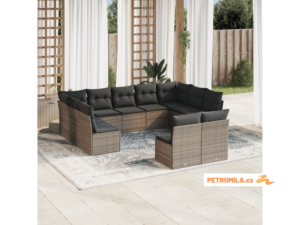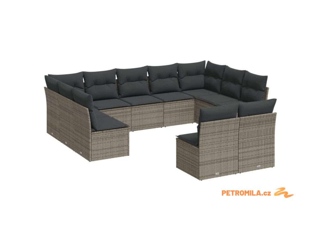 11dílná zahradní sedací souprava s poduškami šedá polyratan