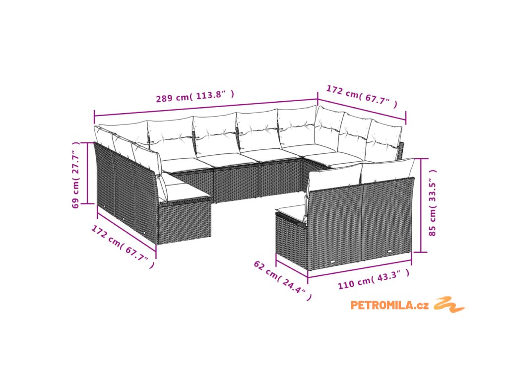 - 11 x poduška na sedák s odnímatelným a pratelným potahem