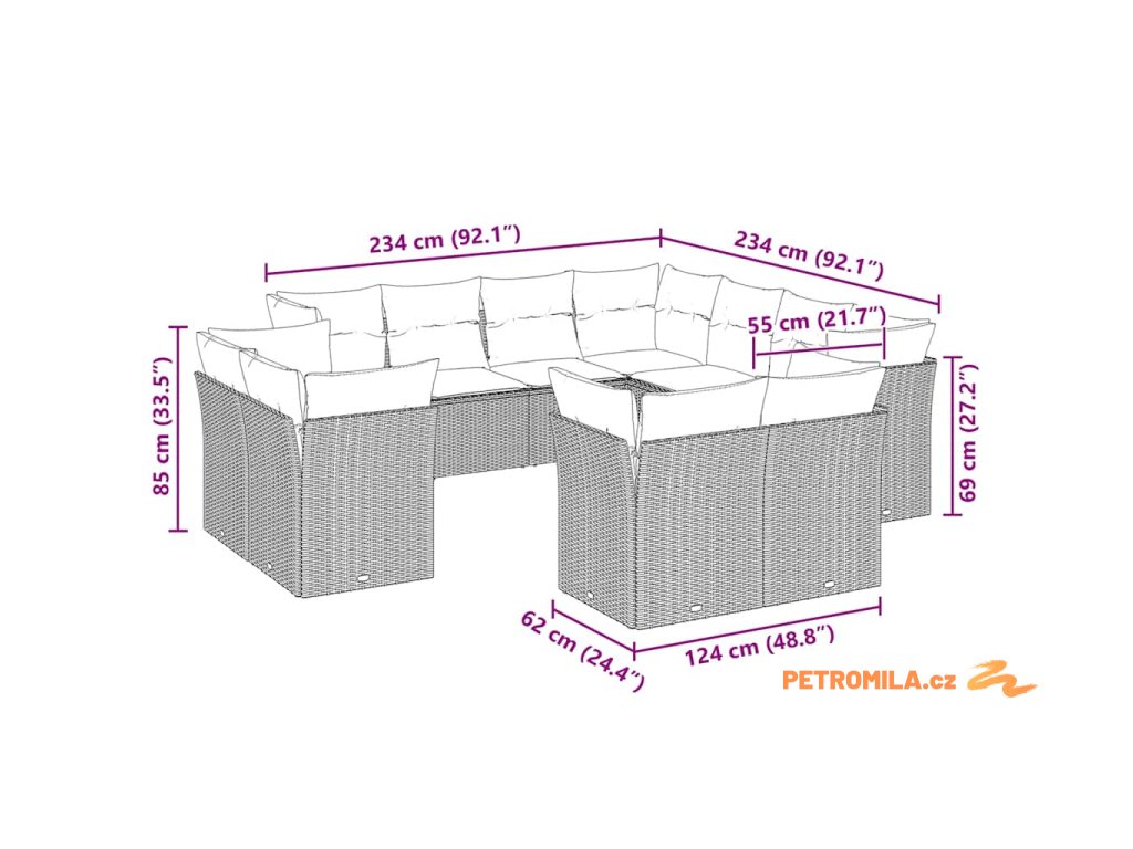- 11 x poduška na sedák s odnímatelným a pratelným potahem