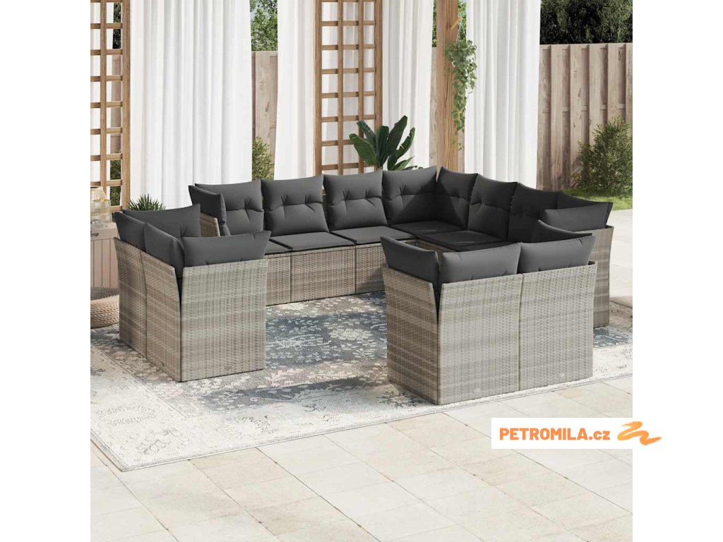 11dílná zahradní sedací souprava s poduškami šedá polyratan
