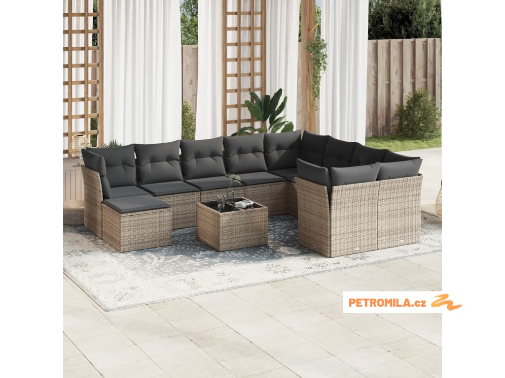 12dílná zahradní sedací souprava podušky světle šedá polyratan