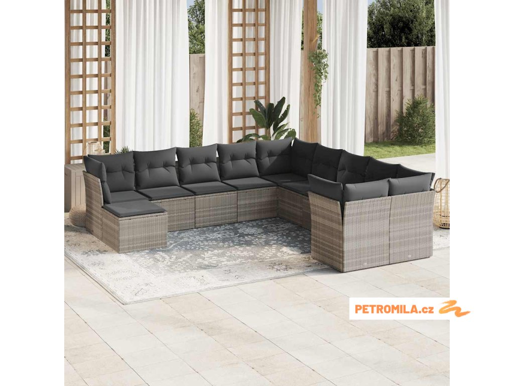 11dílná zahradní sedací souprava s poduškami šedá polyratan