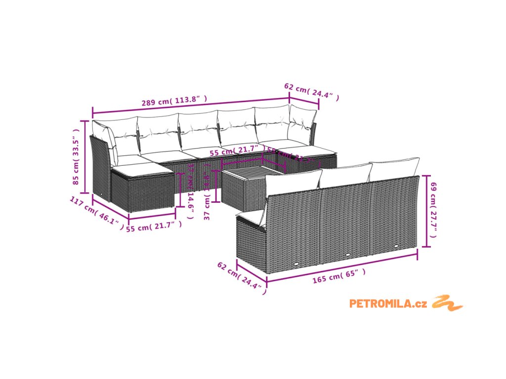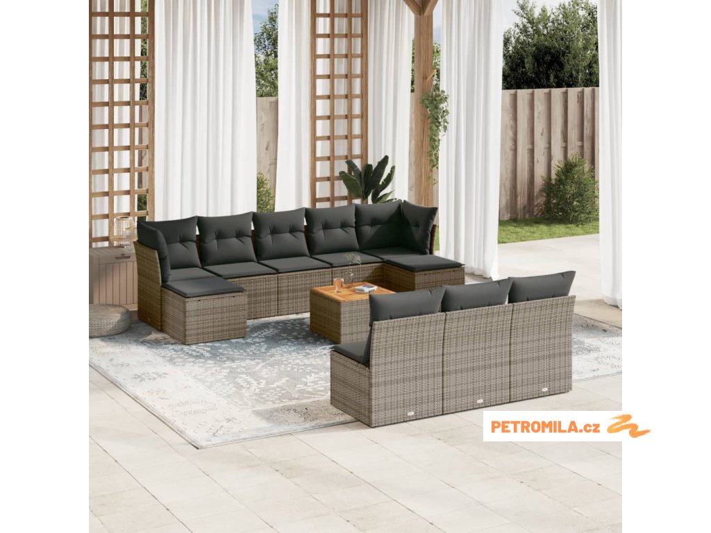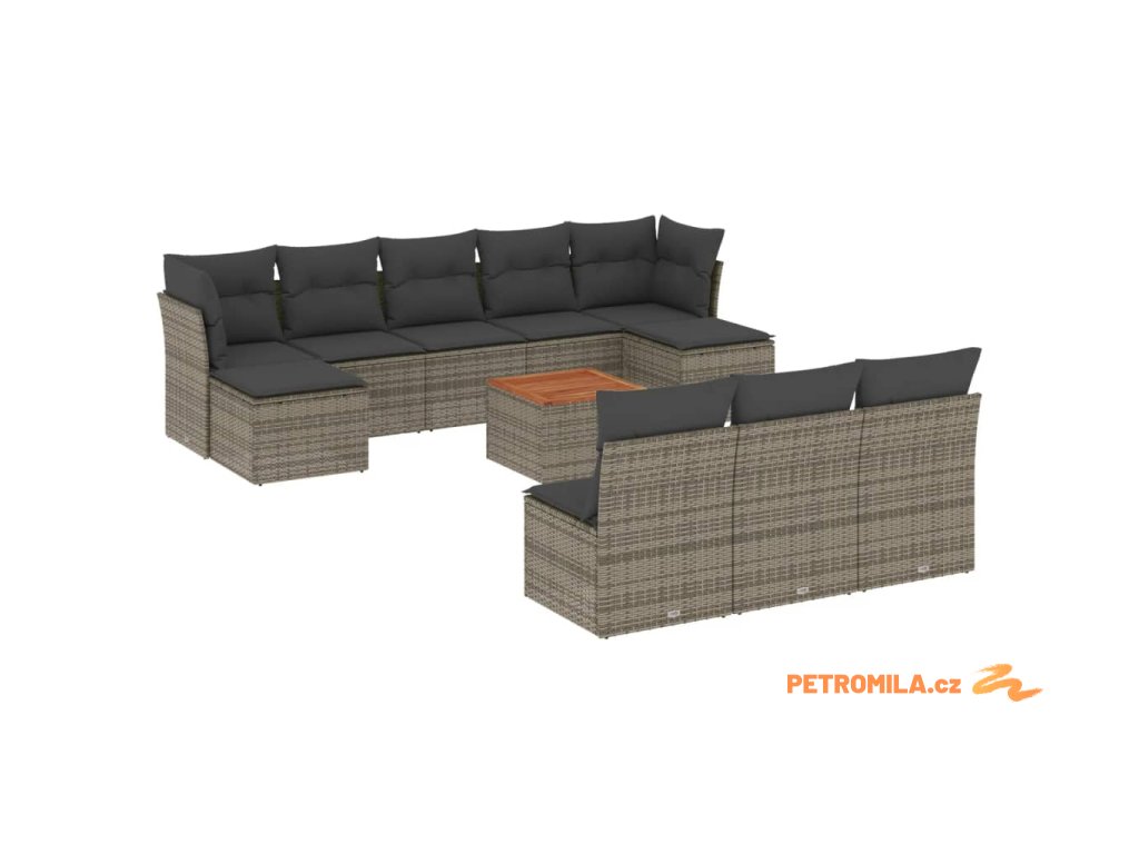 11dílná zahradní sedací souprava s poduškami šedá polyratan