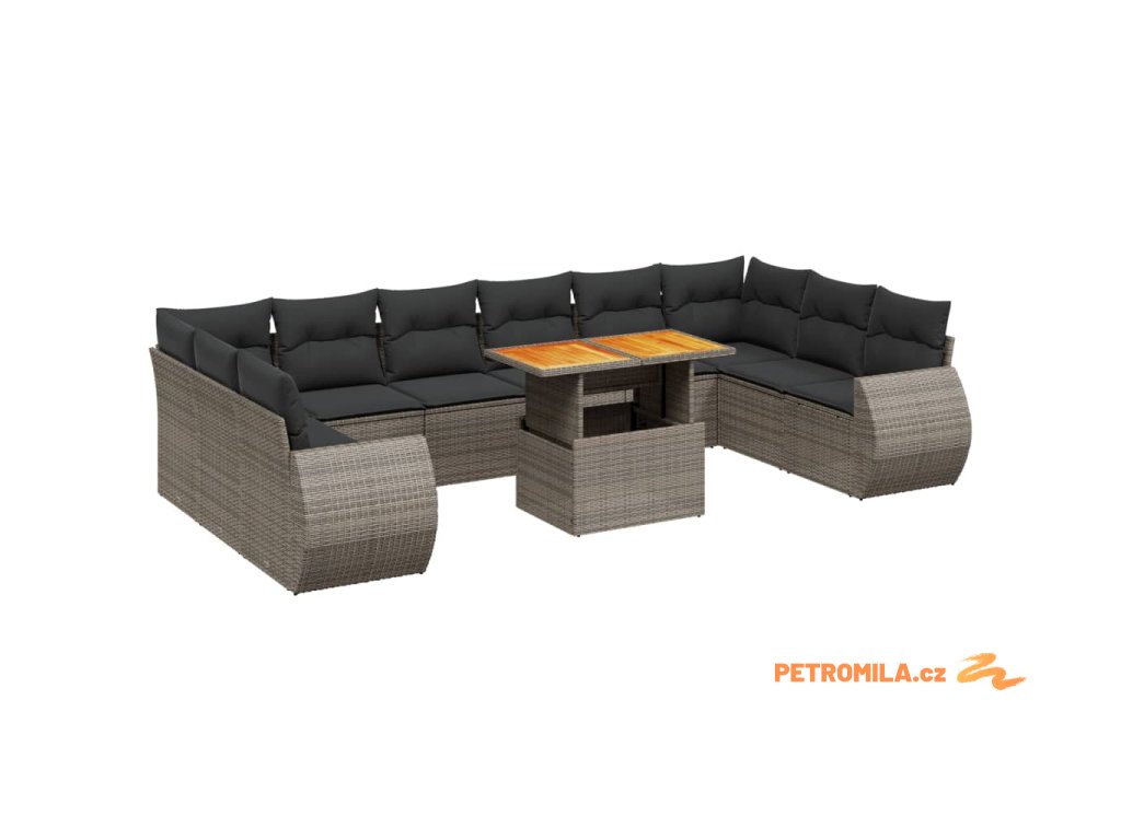11dílná zahradní sedací souprava s poduškami šedá polyratan