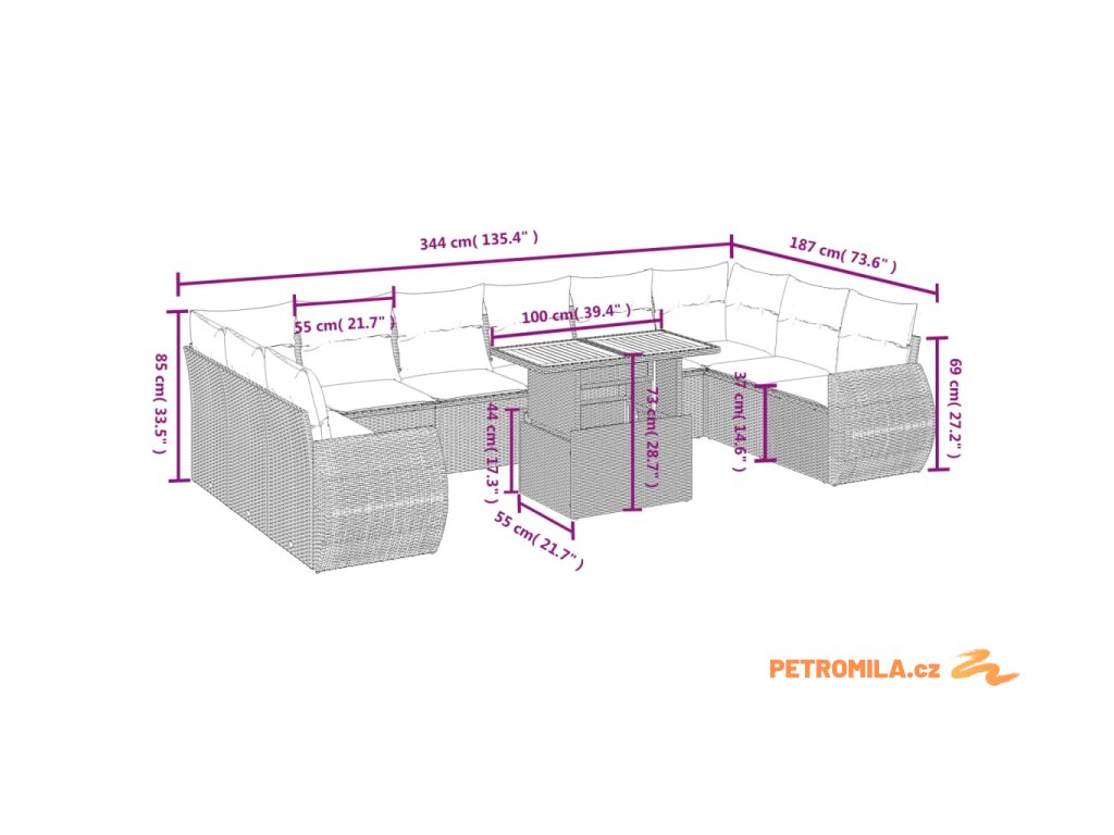 - Modulární design: Tato sada venkovního nábytku se vyznačuje modulární konstrukcí, je tedy zcela flexibilní a lze ji snadno přemisťovat, takže si můžete uspořádat venkovní nábytek dle vašich potřeb.
