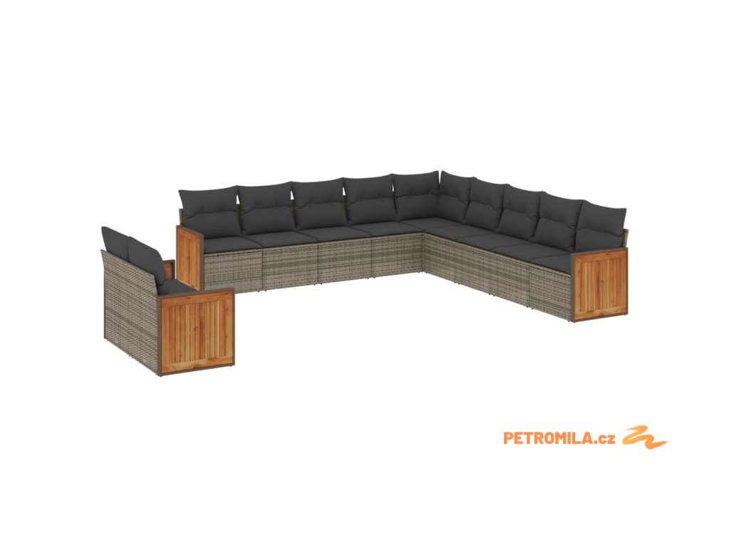 11dílná zahradní sedací souprava s poduškami šedá polyratan