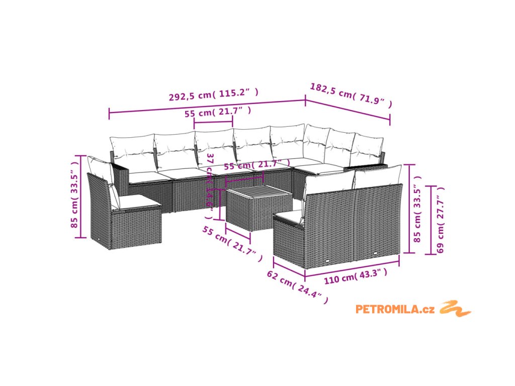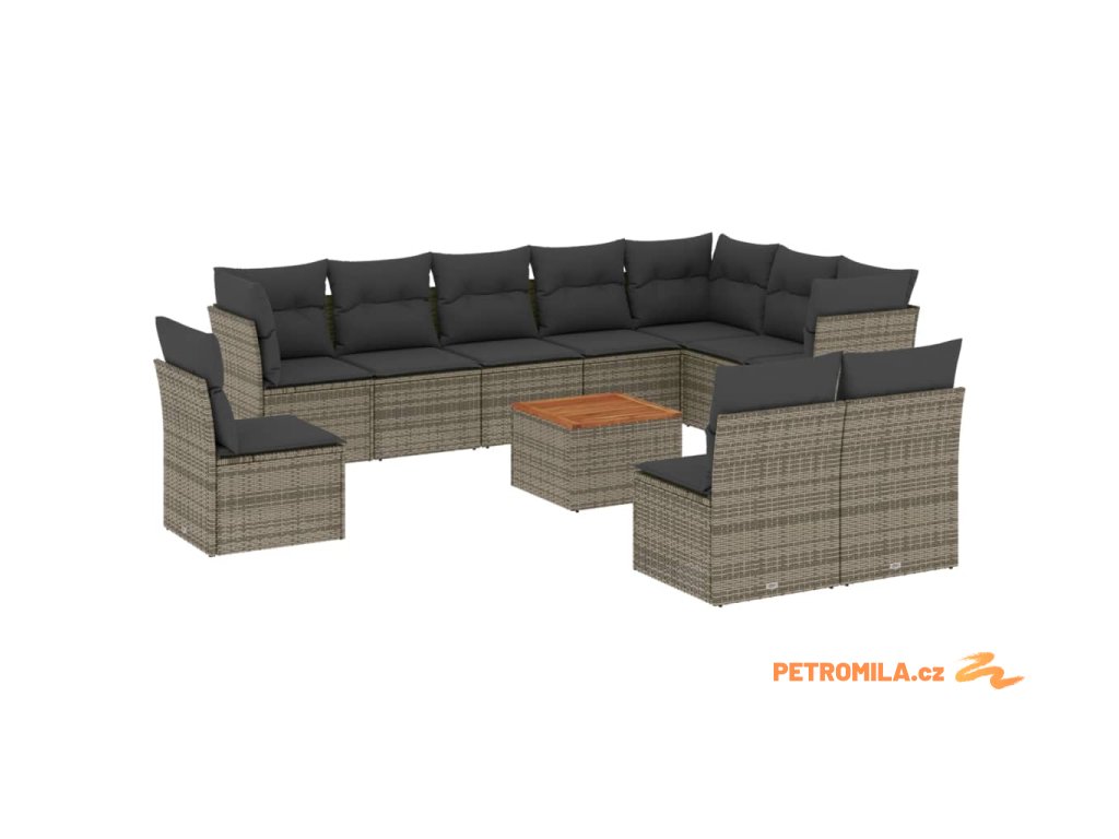 11dílná zahradní sedací souprava s poduškami šedá polyratan