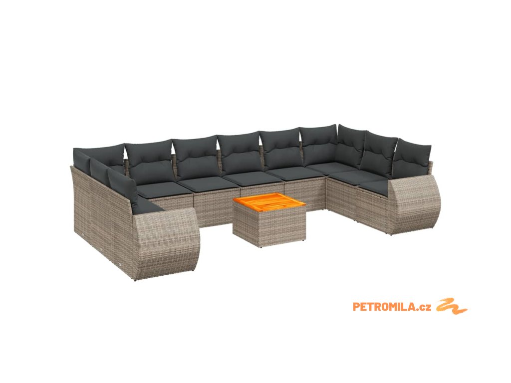 11dílná zahradní sedací souprava s poduškami šedá polyratan