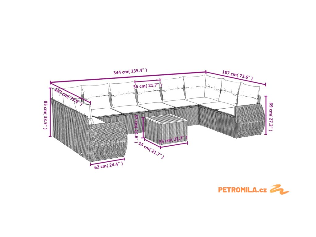 10dílná zahradní sedací souprava + tmavě šedé podušky bambus
