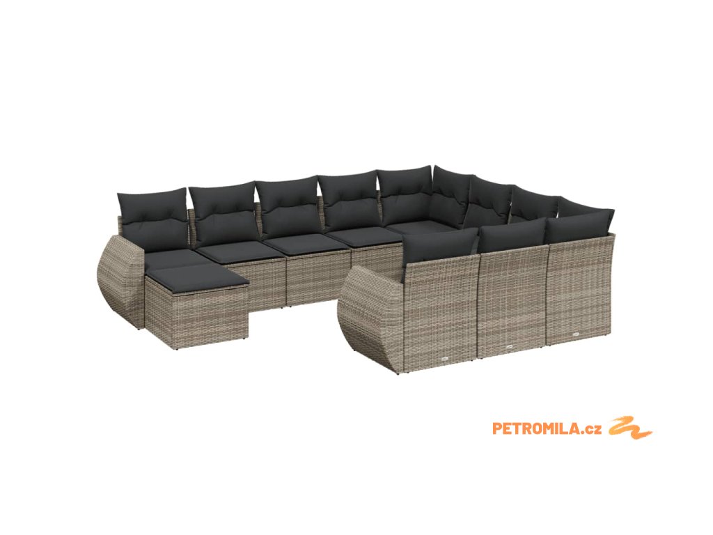 11dílná zahradní sedací souprava s poduškami šedá polyratan