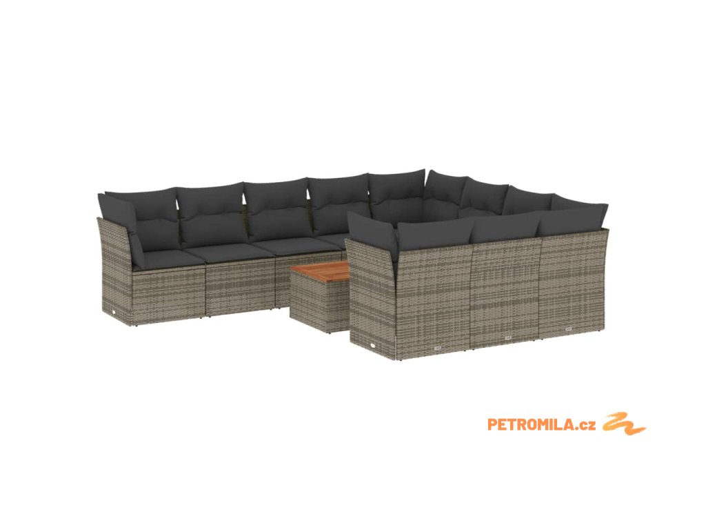 11dílná zahradní sedací souprava s poduškami šedá polyratan