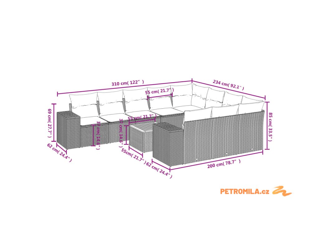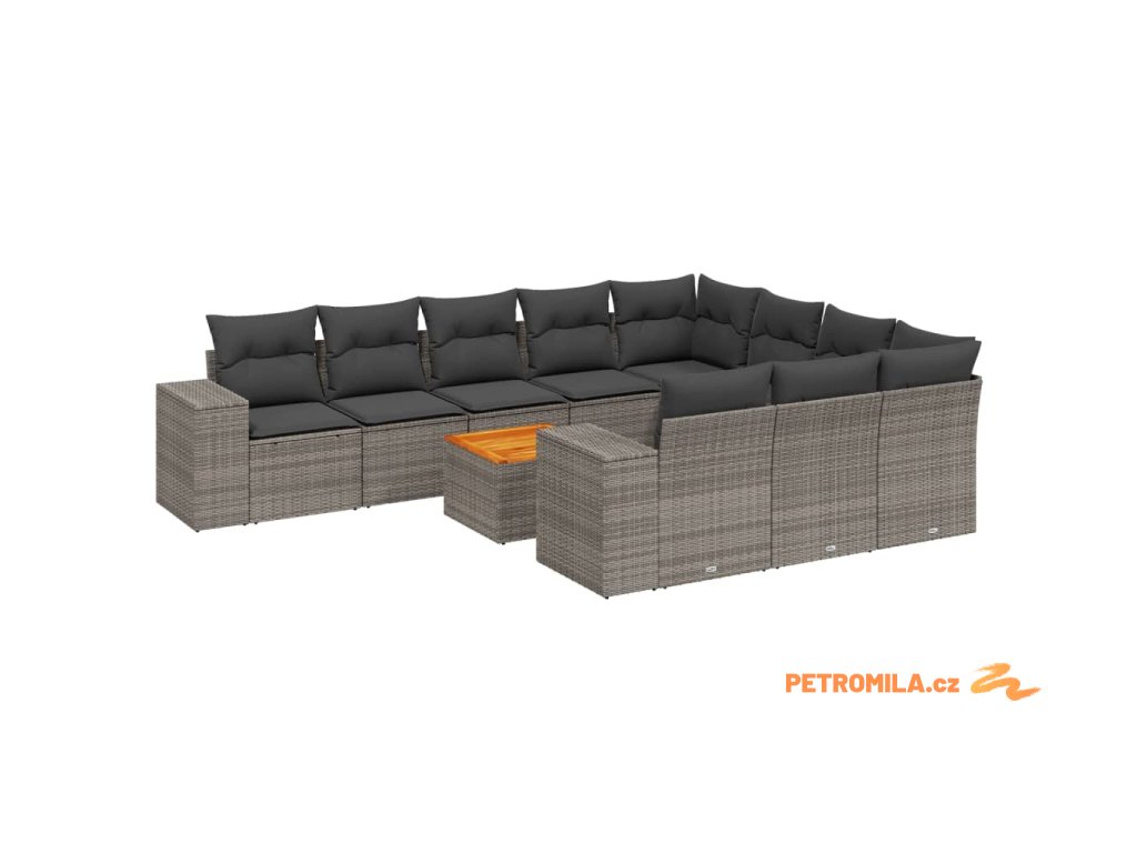 11dílná zahradní sedací souprava s poduškami šedá polyratan