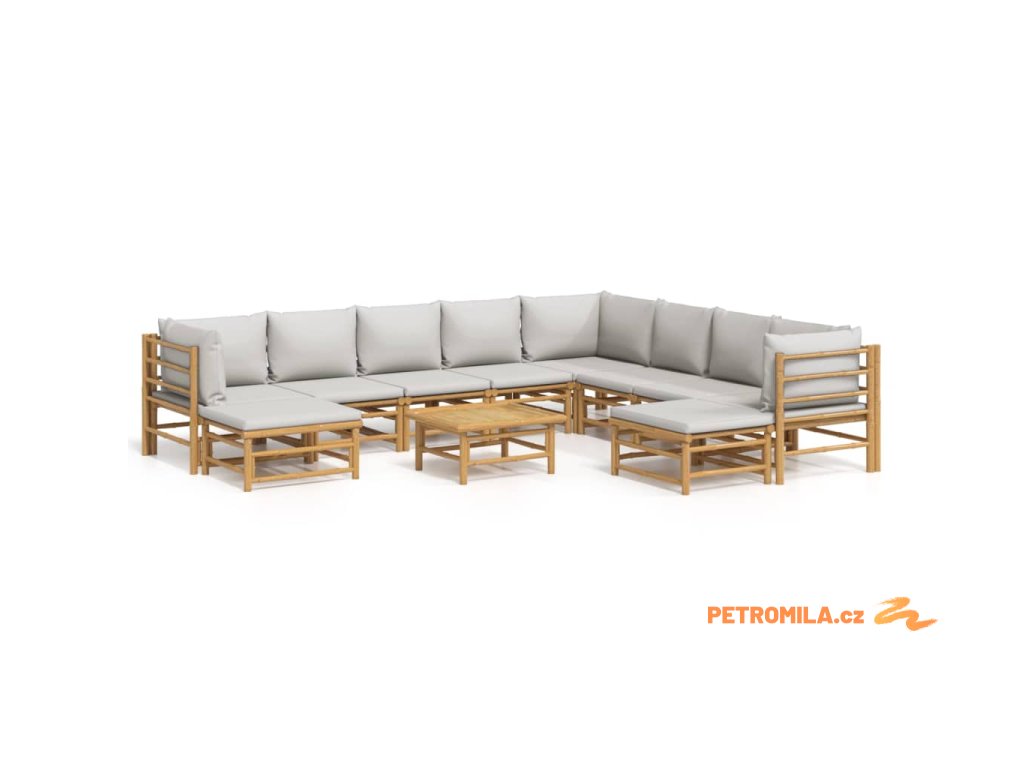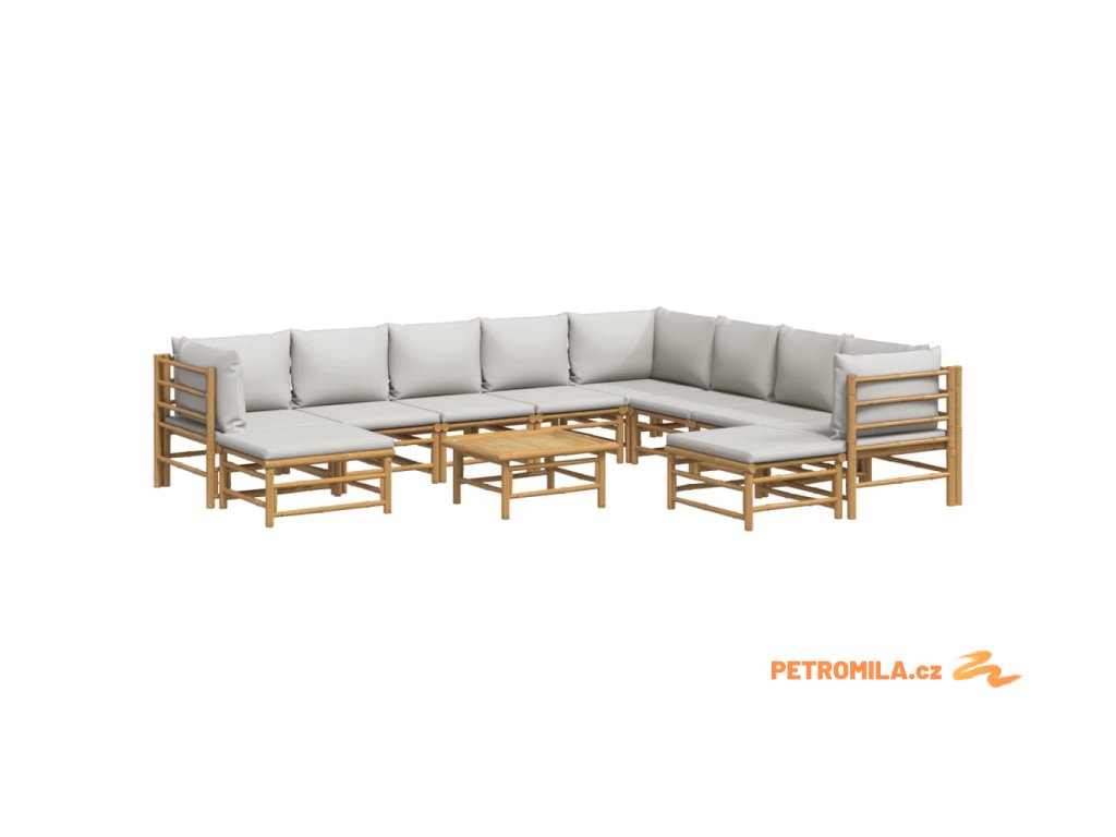 11dílná zahradní sedací souprava světle šedé podušky bambus