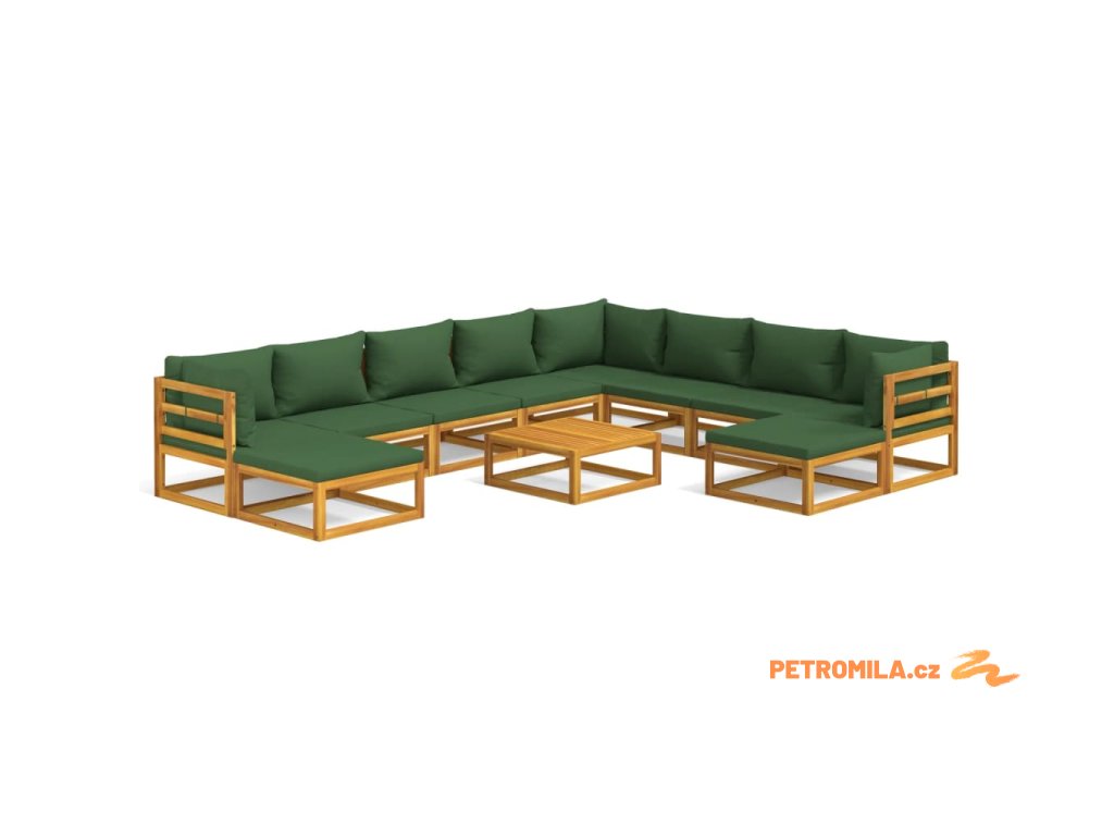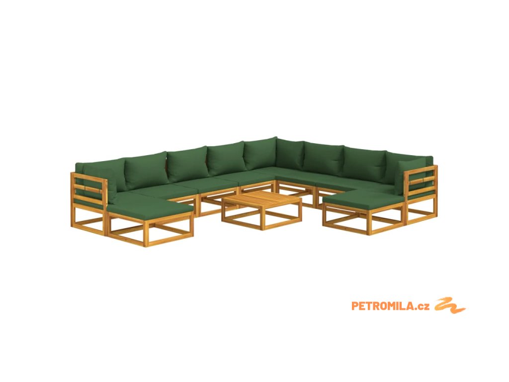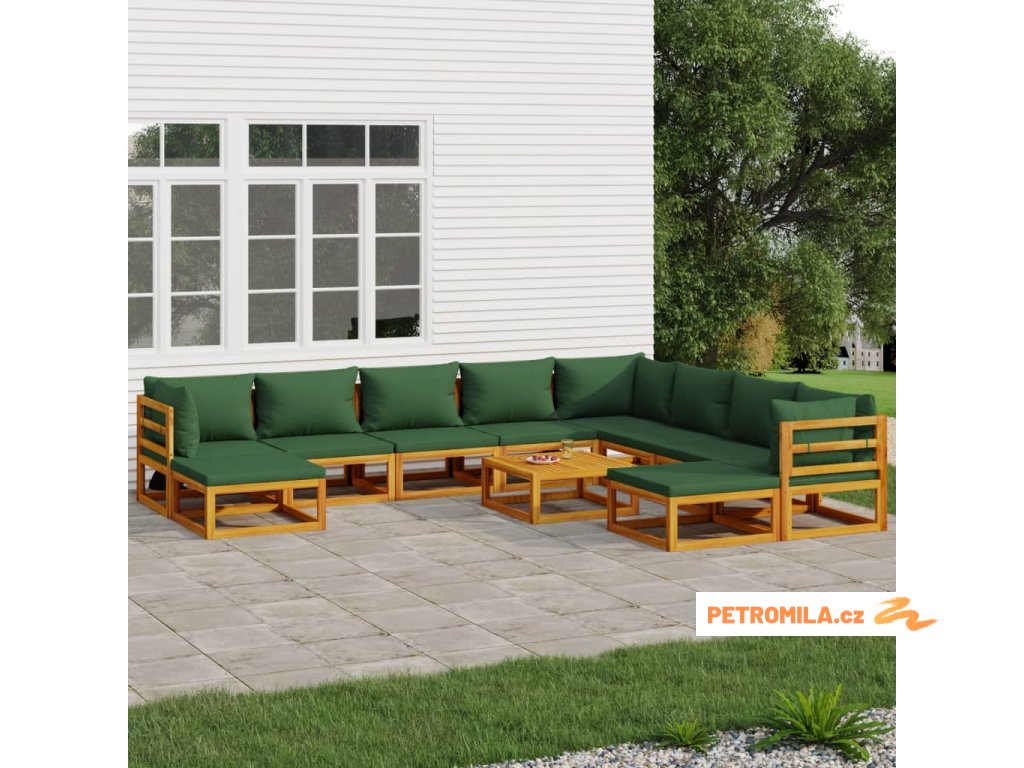 11dílná zahradní sedací souprava zelené podušky masivní dřevo