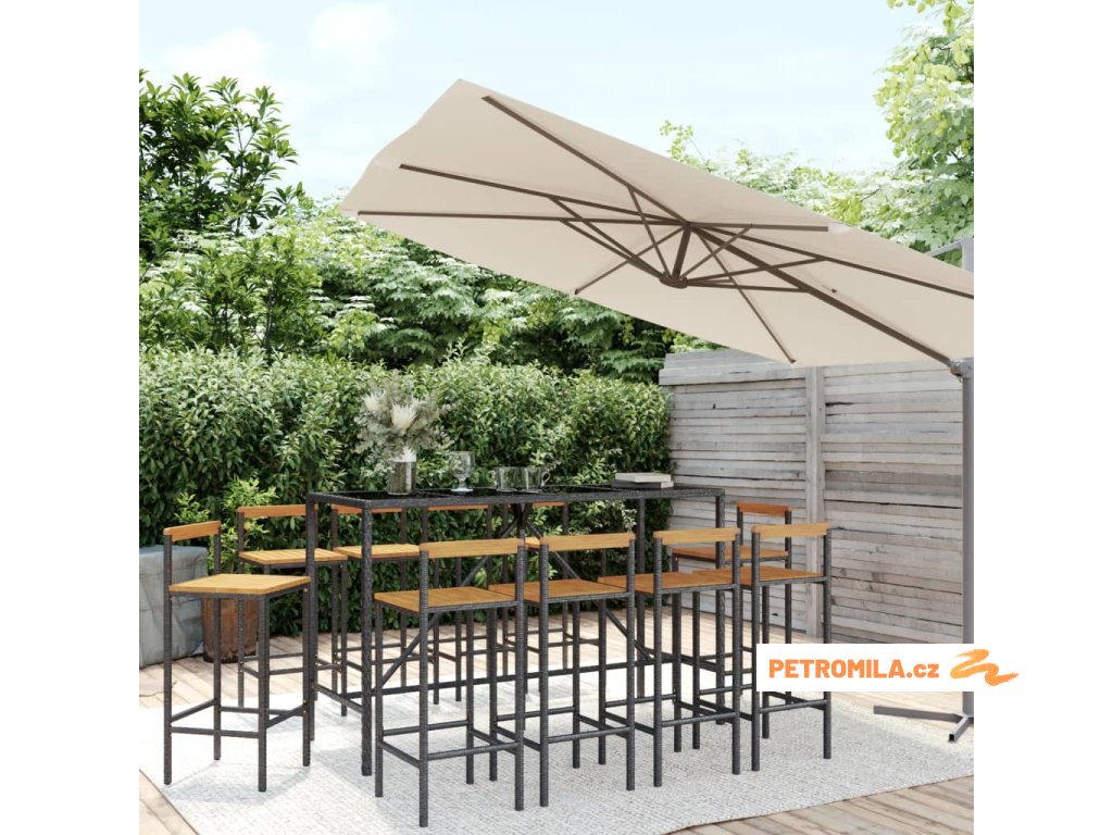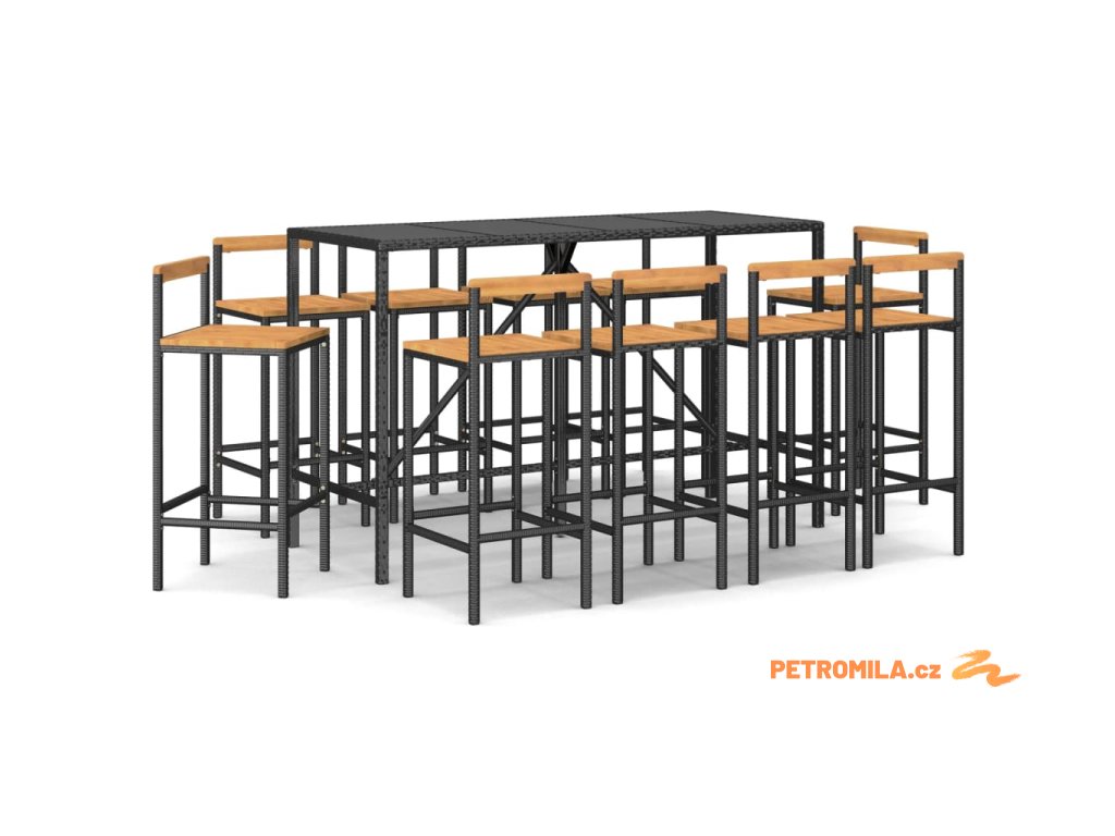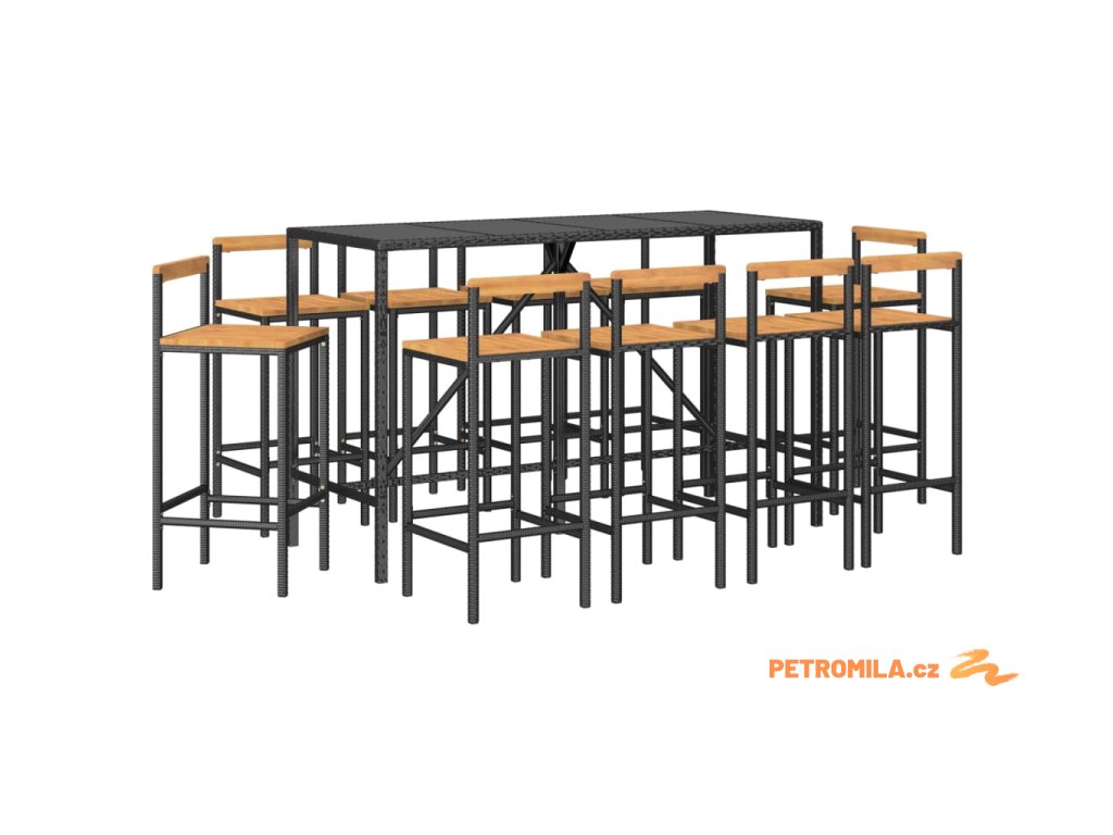 11dílný zahradní barový set černý polyratan a masivní akácie