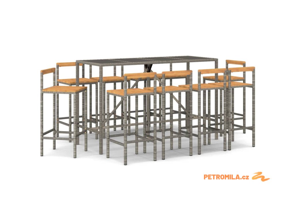 11dílný zahradní barový set šedý polyratan a masivní akácie