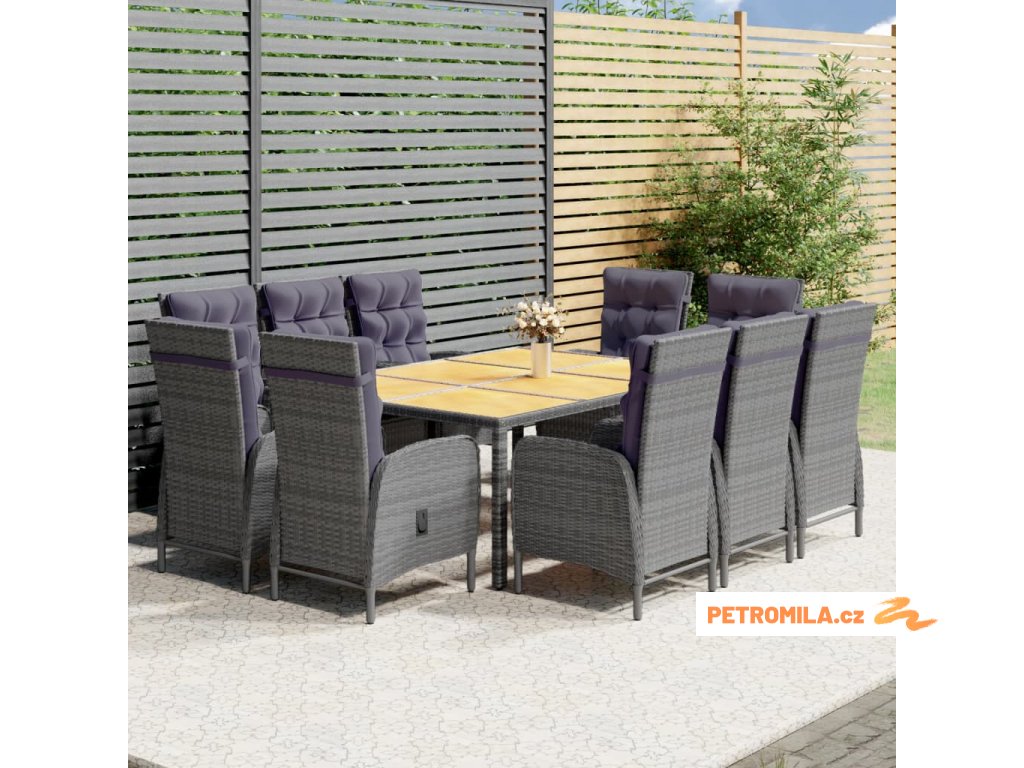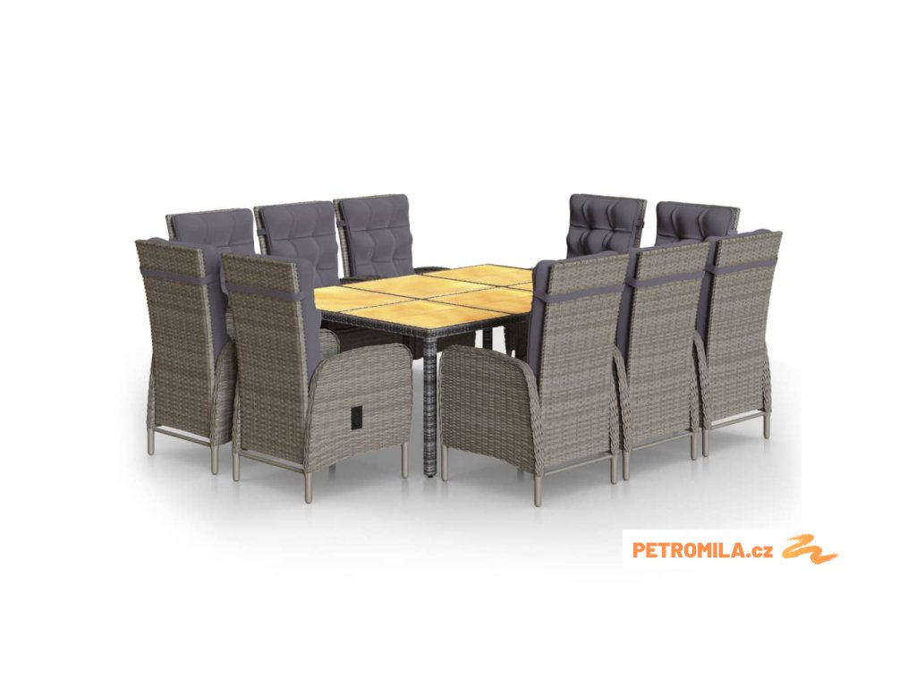 11dílný zahradní jídelní set polyratan šedý