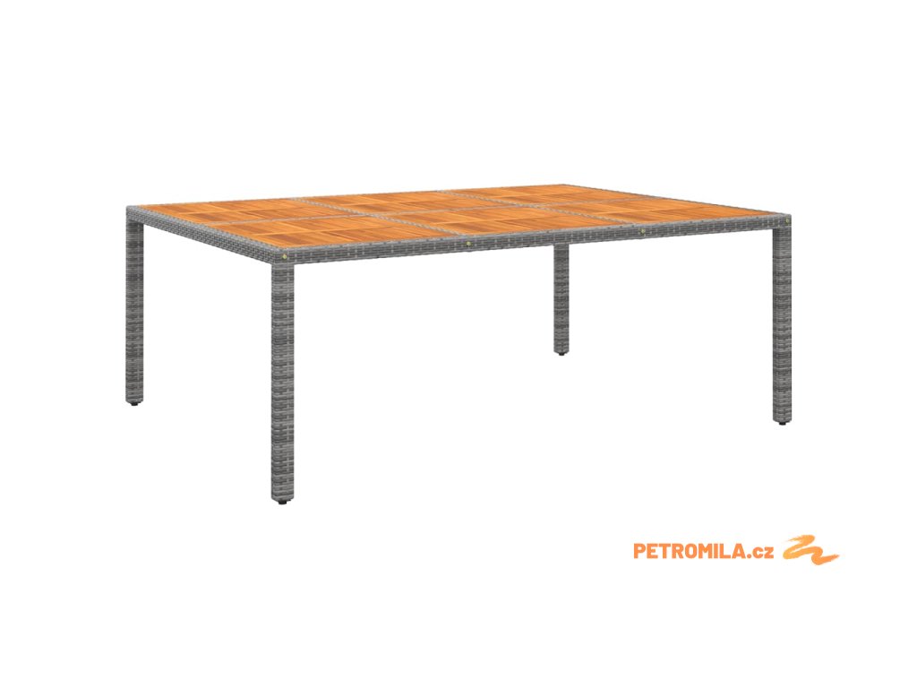 - Materiál: práškově lakovaná ocel, masivní akáciové dřevo, polyratan