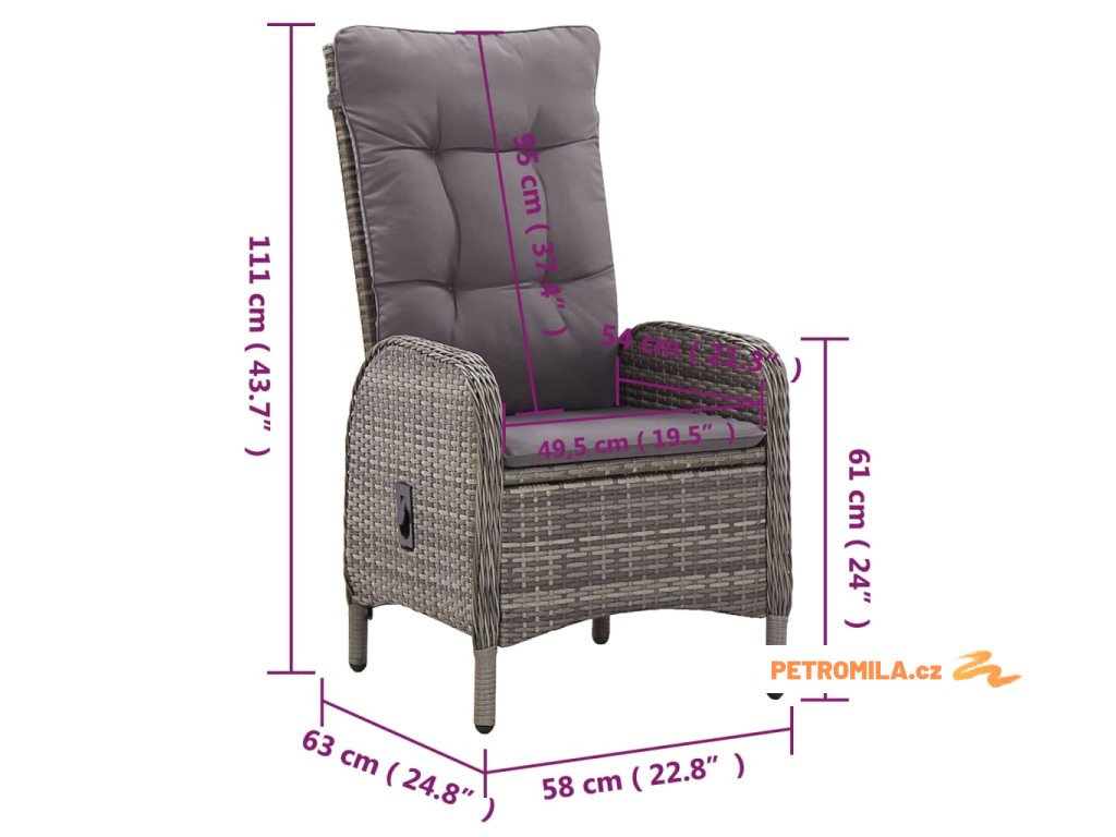 - Pohodlné židle: Zahradní polohovací židle má zaoblené opěradlo a područky, a tím pádem i ergonomičtější tvar pro maximální pohodlí. Součástí balení jsou také podušky pro příjemnější sezení. Potah na zip lze stáhnout a jednoduše vyprat.