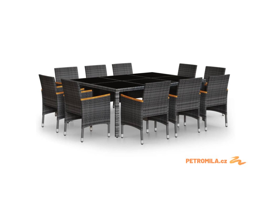 11dílný zahradní jídelní set polyratan šedý