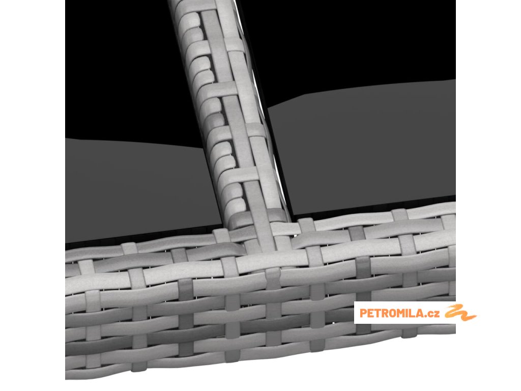 - Materiál: práškově lakovaná ocel, tvrzené sklo, polyratan