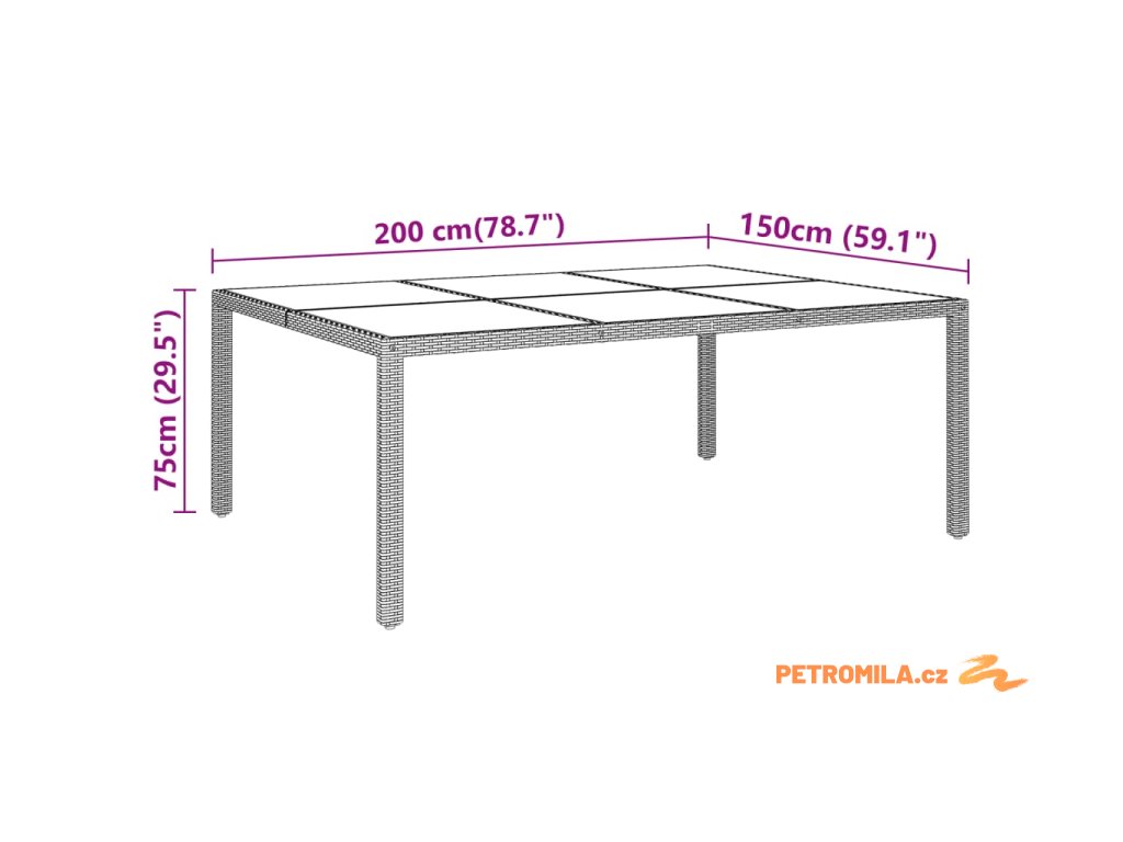 - Rozměry: 200 x 150 x 75 cm (D x Š x V)