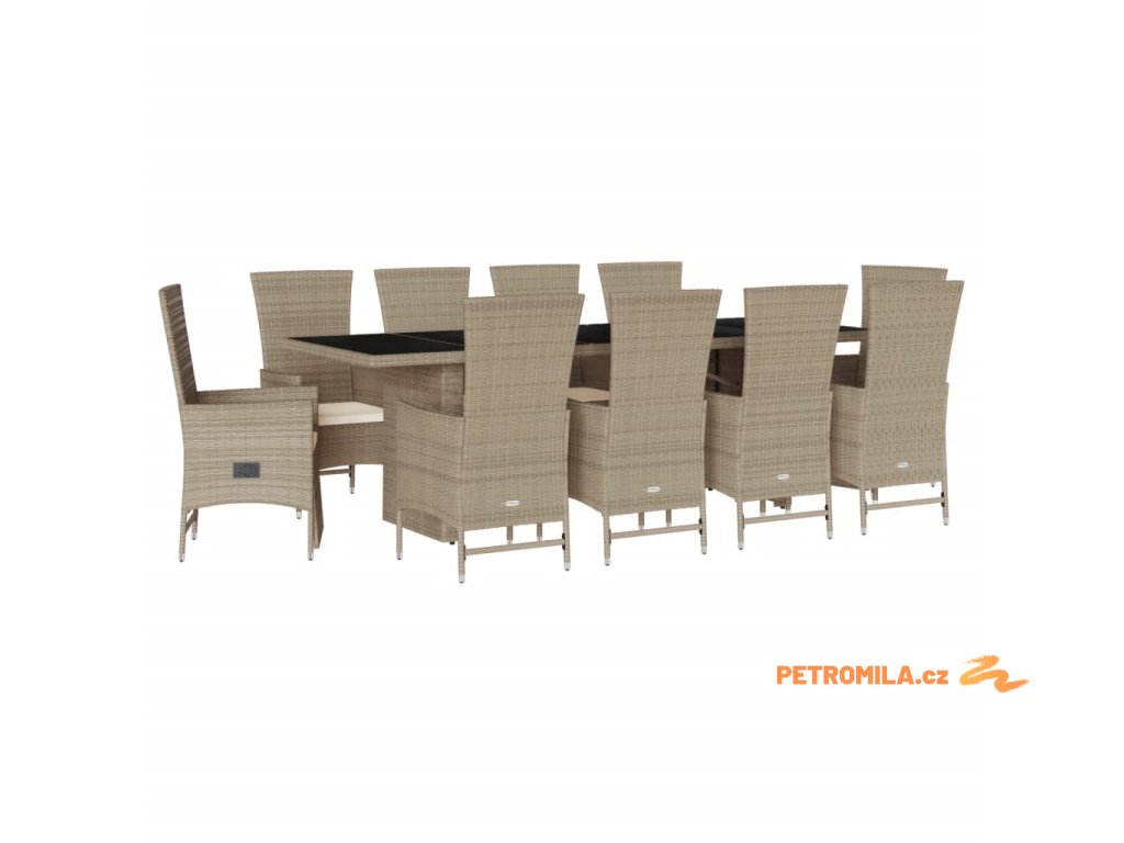 11dílný zahradní jídelní set s poduškami béžový polyratan
