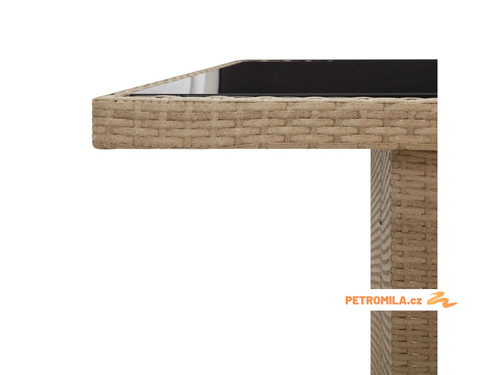 - Materiál: PE ratan, práškově lakovaná ocel, tvrzené sklo