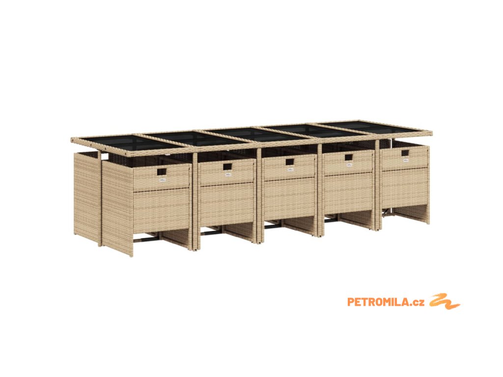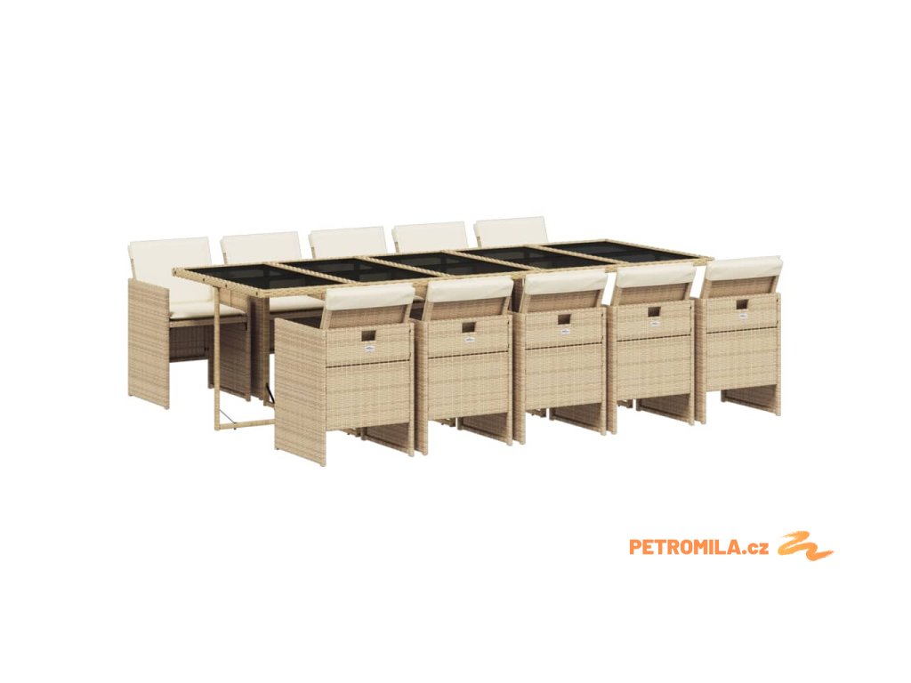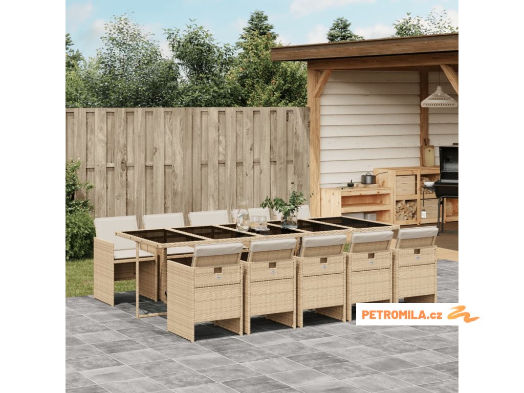 11dílný zahradní jídelní set s poduškami béžový polyratan