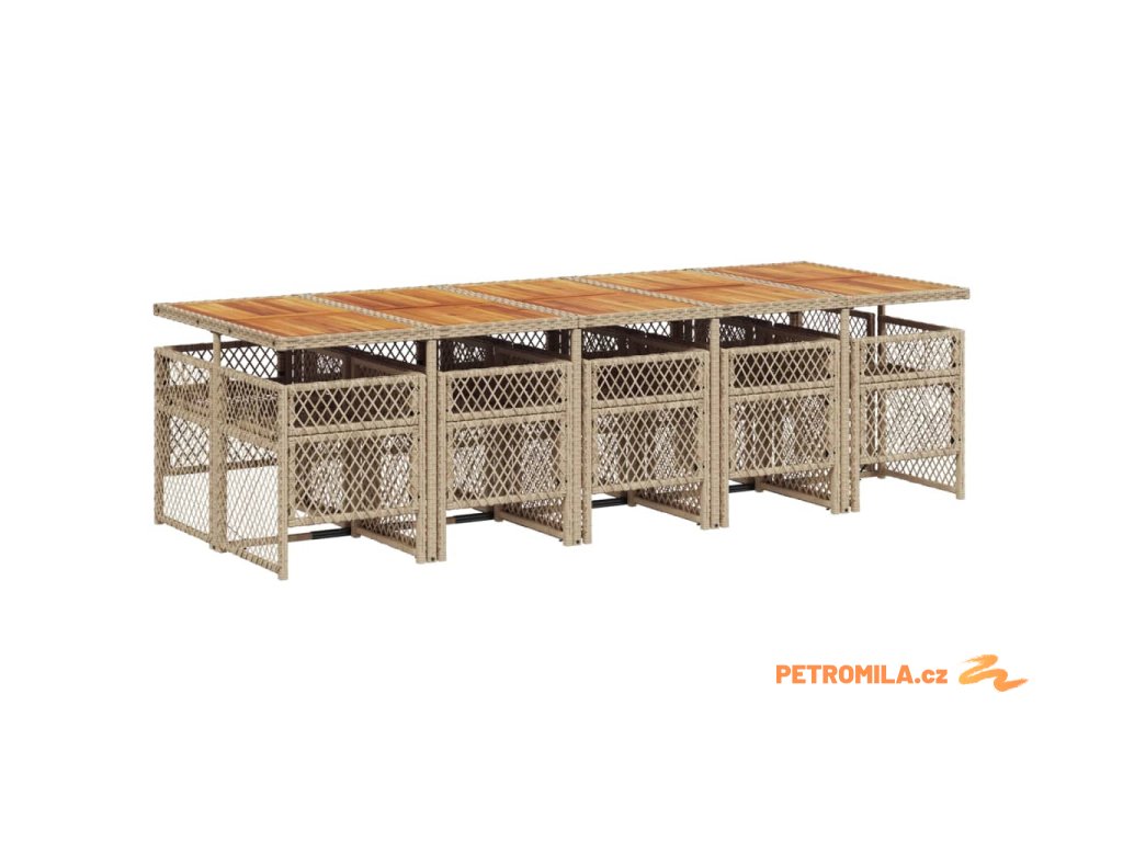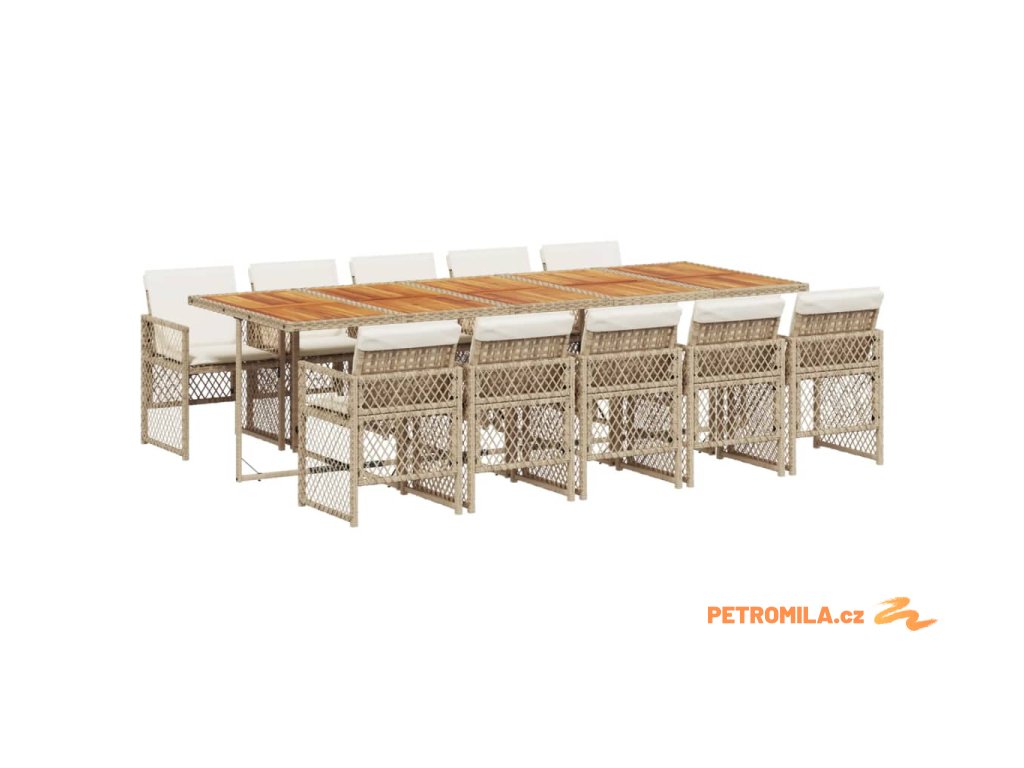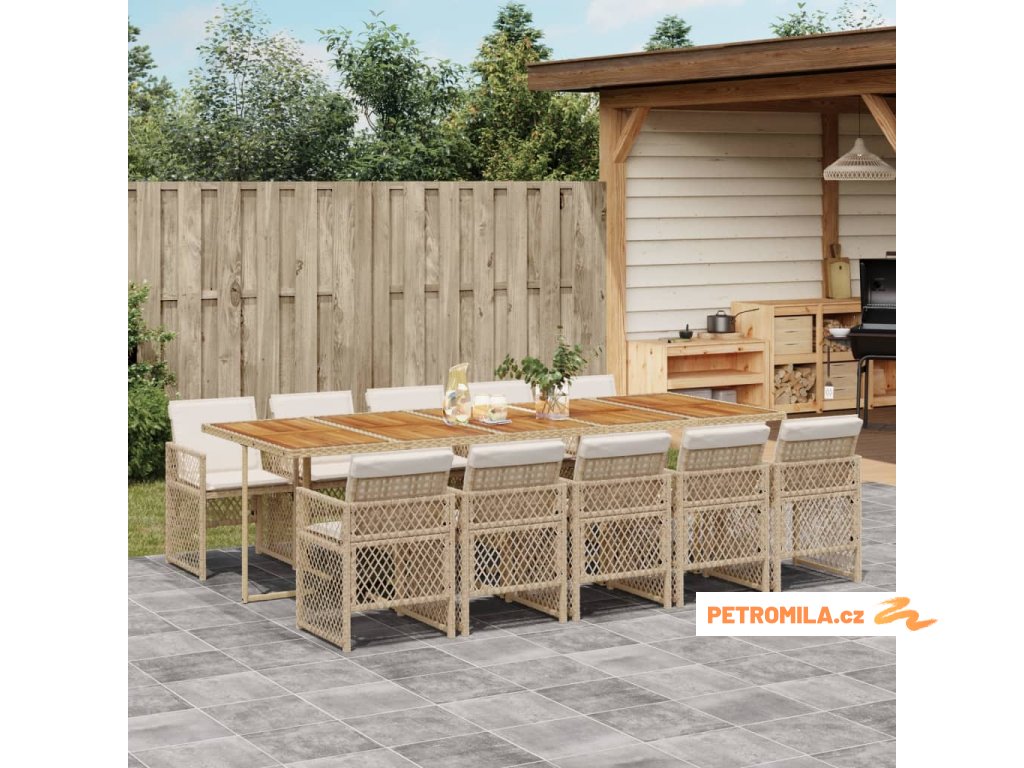 11dílný zahradní jídelní set s poduškami béžový polyratan