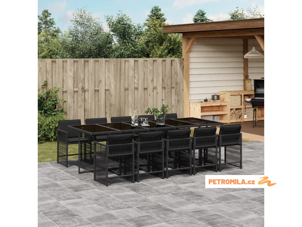 11dílný zahradní jídelní set s poduškami černý polyratan