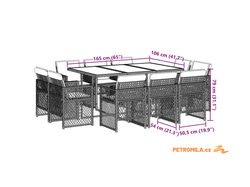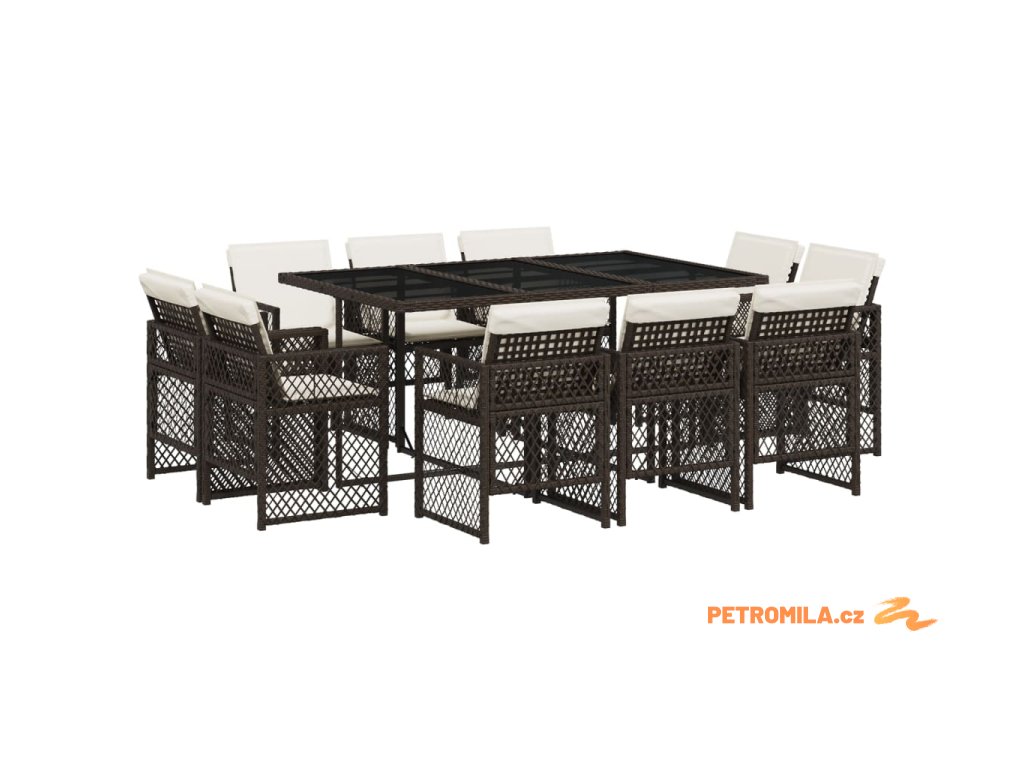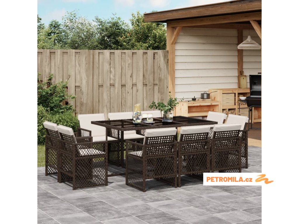 11dílný zahradní jídelní set s poduškami hnědý polyratan