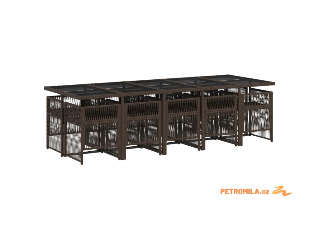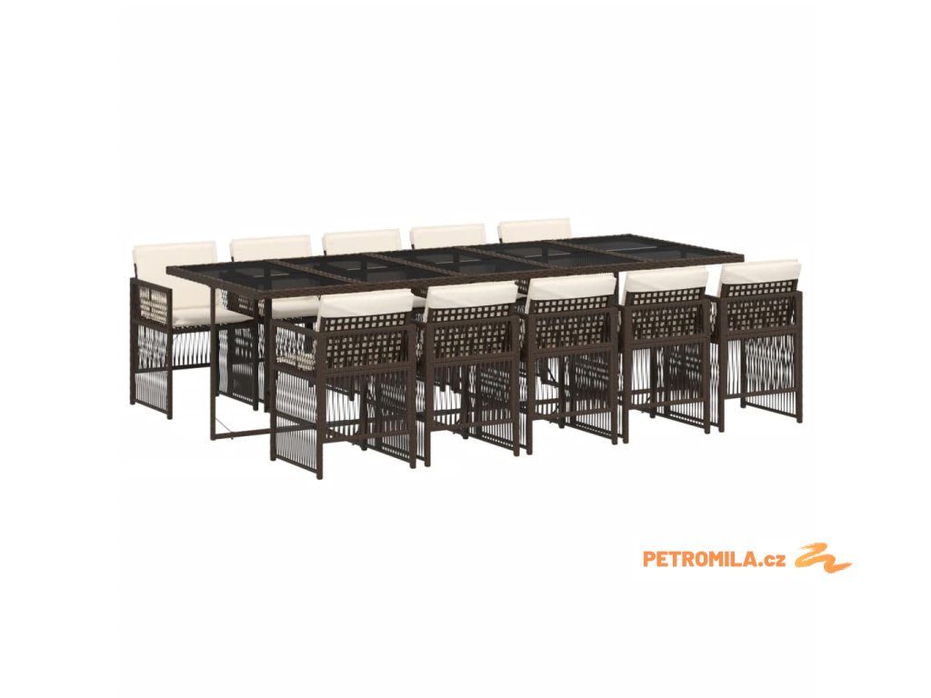 11dílný zahradní jídelní set s poduškami hnědý polyratan
