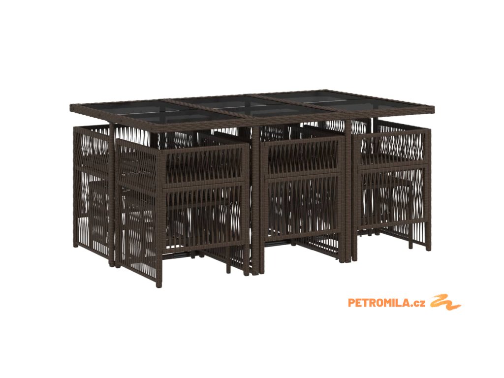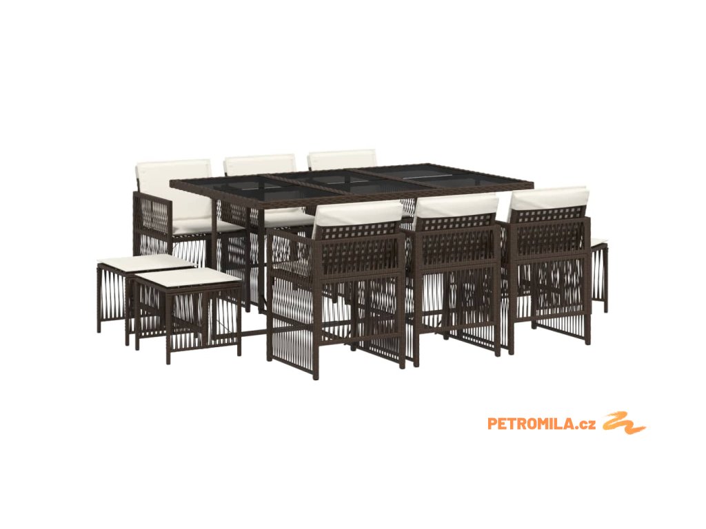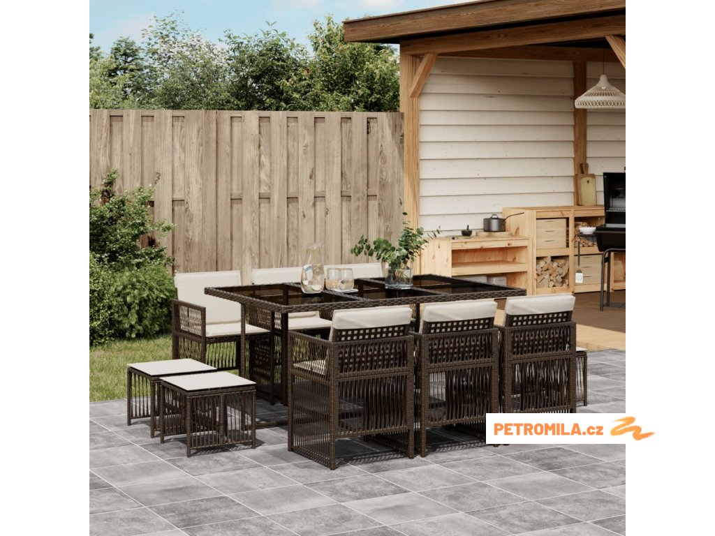 11dílný zahradní jídelní set s poduškami hnědý polyratan